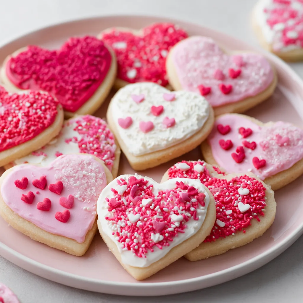 What makes these cookies special isn’t just their tender crumb or lightly crisp edges—it’s the love poured into decorating them. Heart shapes, soft pinks and reds, delicate piping, and a gentle sparkle of sugar turn a humble sugar cookie into a heartfelt gift. These cookies are perfect for Valentine’s parties, school celebrations, care packages, or a cozy afternoon spent decorating with loved ones.