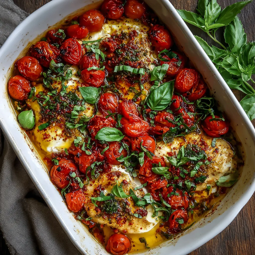 5️⃣ Bake to perfection. Transfer the dish to the oven and bake uncovered for about 30–35 minutes, or until the chicken reaches an internal temperature of 165°F (74°C). The tomatoes should be blistered and juicy, and the feta soft and lightly browned.