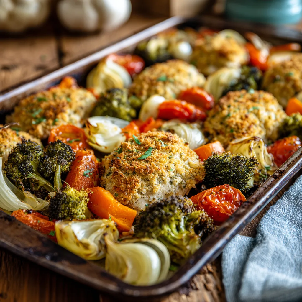 The star of this dish is tender chicken coated in a savory Parmesan crust that bakes up crisp on the outside while staying juicy inside. Paired with colorful roasted vegetables, it becomes a complete meal cooked all at once, allowing the flavors to mingle naturally. The vegetables caramelize gently in the oven, bringing out their sweetness and adding depth without the need for heavy sauces or complicated steps.