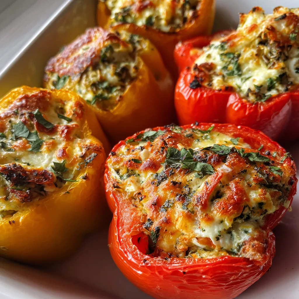 - Spoon the ricotta mixture generously into each bell pepper half, pressing lightly to fill completely.