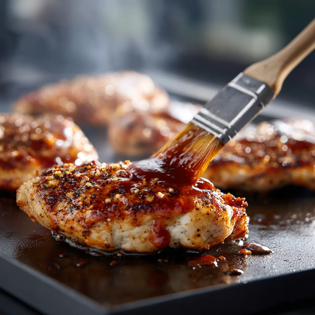Flip the chicken once more and brush the other side with BBQ sauce. Allow it to cook for 1 to 2 minutes so the sauce caramelizes slightly.