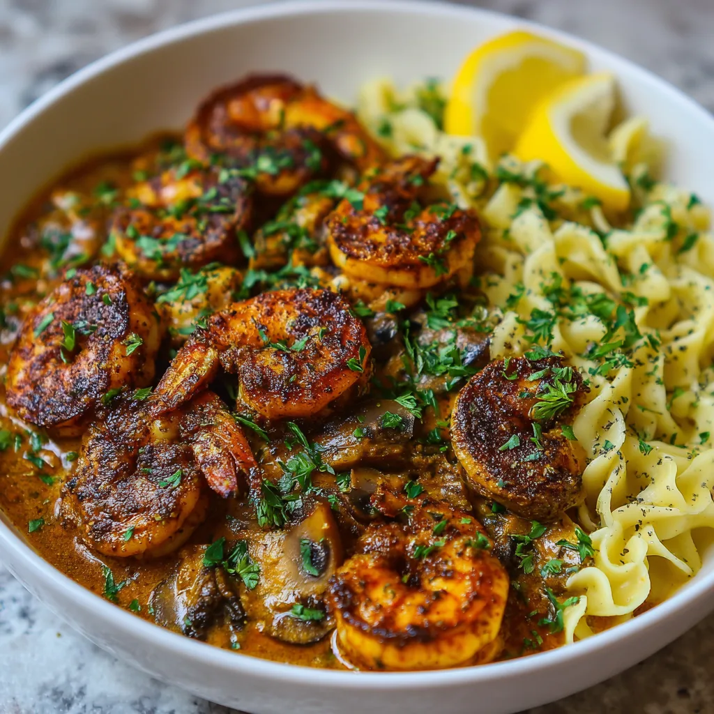 This dish brings together the rich, velvety texture of traditional stroganoff with the bold Cajun kick of blackened shrimp. Imagine tender shrimp coated in aromatic spices, sizzled to perfection in butter, and then bathed in a luscious sour cream and mushroom sauce. The contrast between the smoky shrimp and the creamy sauce is pure magic — every bite feels like a warm hug with a southern flair.