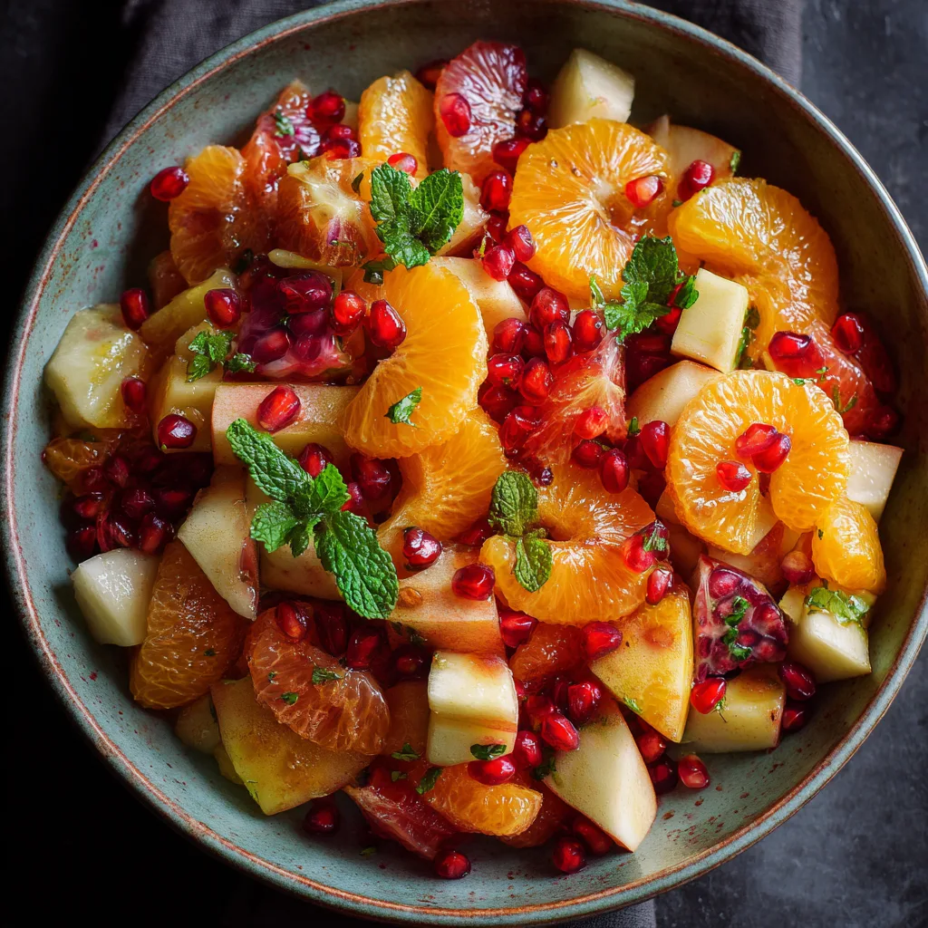 This salad celebrates that tradition with a respectful, simple approach. Juicy oranges, ruby pomegranate seeds, crisp apples, and golden citrus dressing come together in a bowl that feels both celebratory and nourishing. The flavors are clean and honest, letting each fruit shine while the citrus glow dressing gently ties everything together. No fancy techniques, no complicated tools—just good fruit, prepared with care and intention.