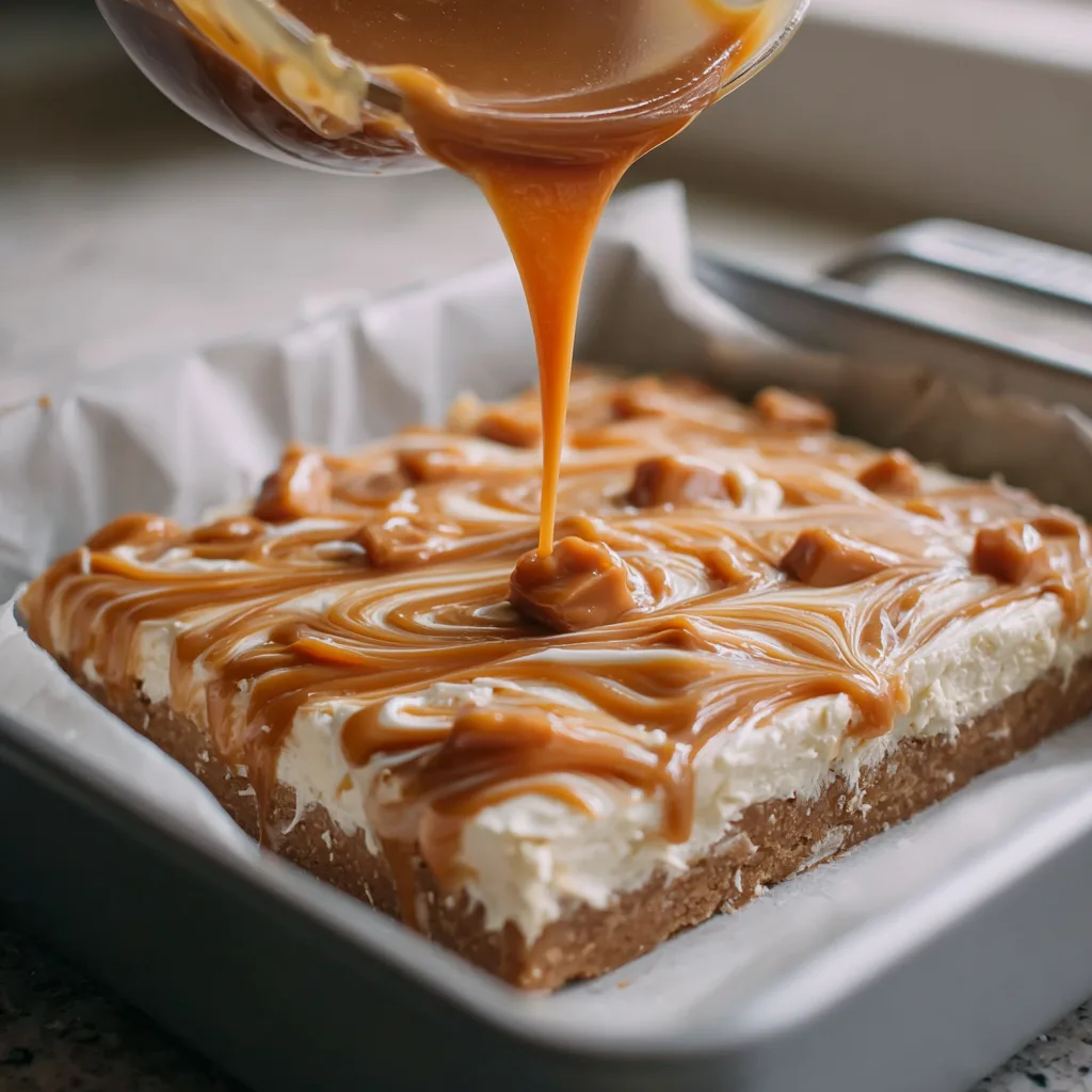 Imagine a buttery base that’s soft yet slightly chewy, a caramel layer that melts into every corner, and delicate swirls that give each bite a dreamy sweetness. These bars bake up beautifully, cut cleanly, and travel well—perfect for potlucks, family gatherings, celebrations, or cozy evenings with a cup of tea. Whether you’re a seasoned baker or just getting started, this recipe promises success with minimal fuss.