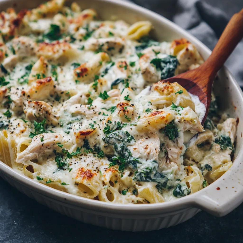 Cheesy Chicken & Spinach Alfredo Bake – Comfort in a Casserole