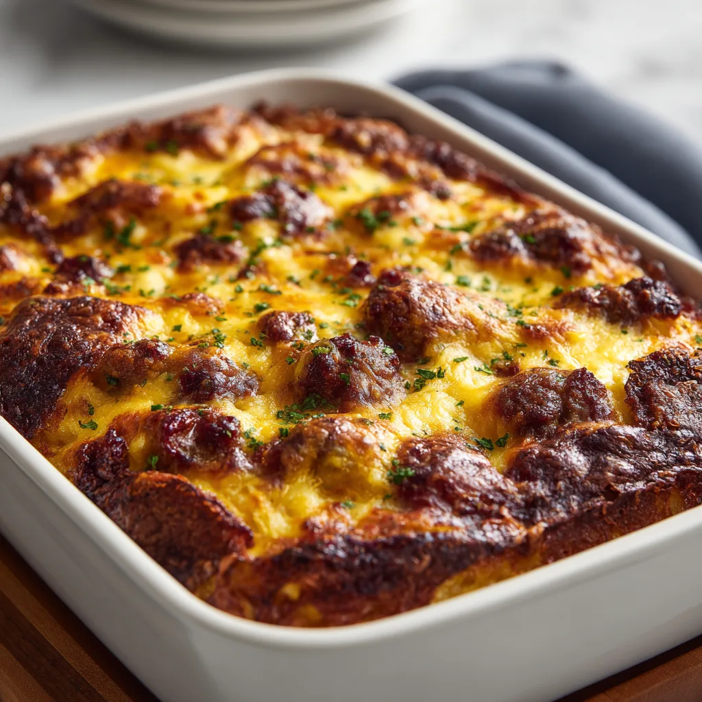 Hi there, food lover! 👋 Ready to dive into a warm, comforting brunch dish that brings everyone to the table with smiles and full hearts? This traditional-style recipe celebrates simple ingredients—eggs, sausage, cheese, and golden hashbrowns—layered together into a hearty bake. It’s the kind of dish families have passed down for generations, the kind that fills your kitchen with aromas of sizzling sausage and bubbling cheese.