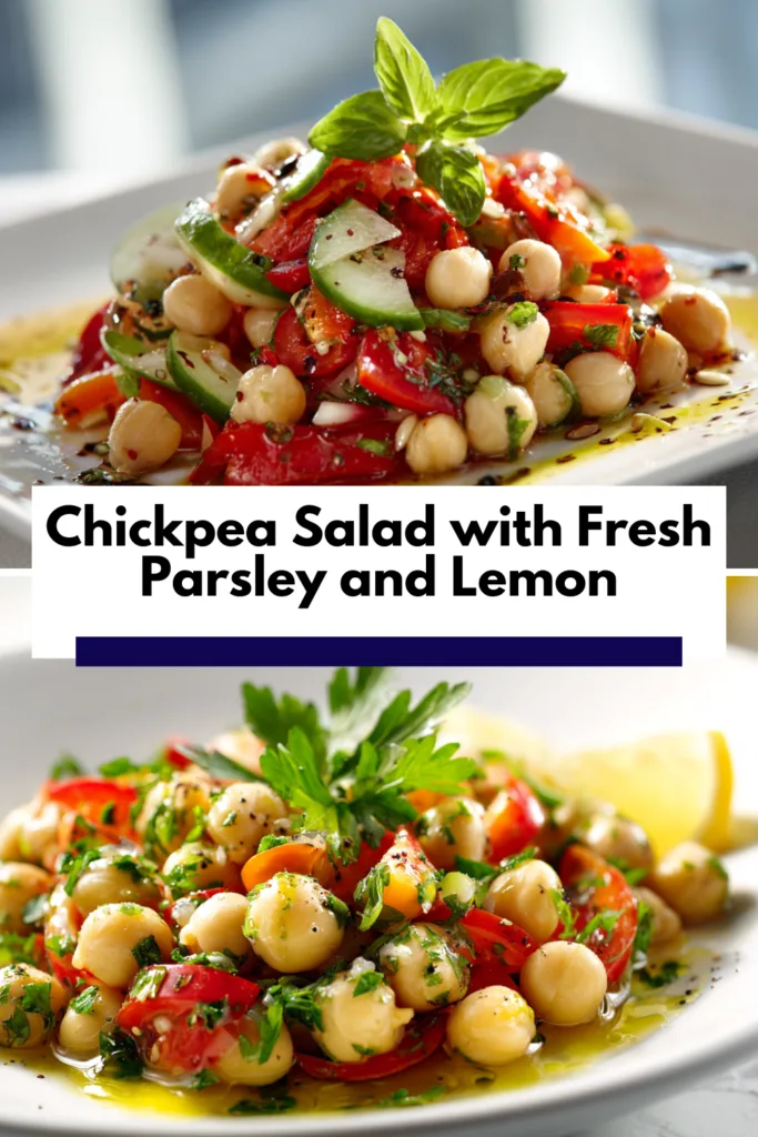 Discover a classic chickpea salad with fresh parsley and lemon, a light Mediterranean recipe made with simple ingredients, vibrant herbs, and wholesome flavors.