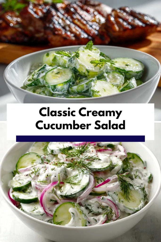 Discover a classic creamy cucumber salad recipe with fresh cucumbers, a rich tangy dressing, and simple traditional flavors perfect for any meal.