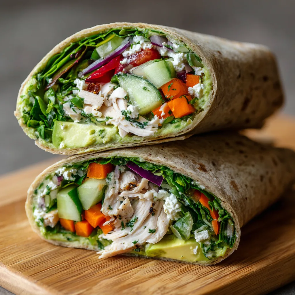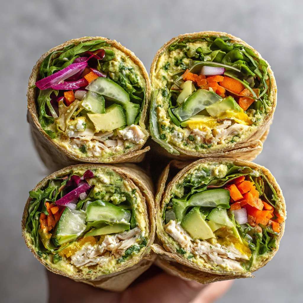 These wraps are packed with vitamins A, C, and E, heart-healthy fats from avocado and olive oil, and a good dose of lean protein if you include chicken or tuna. For a fully plant-based option, skip the cheese and meat and add chickpeas or tofu instead. 🌱