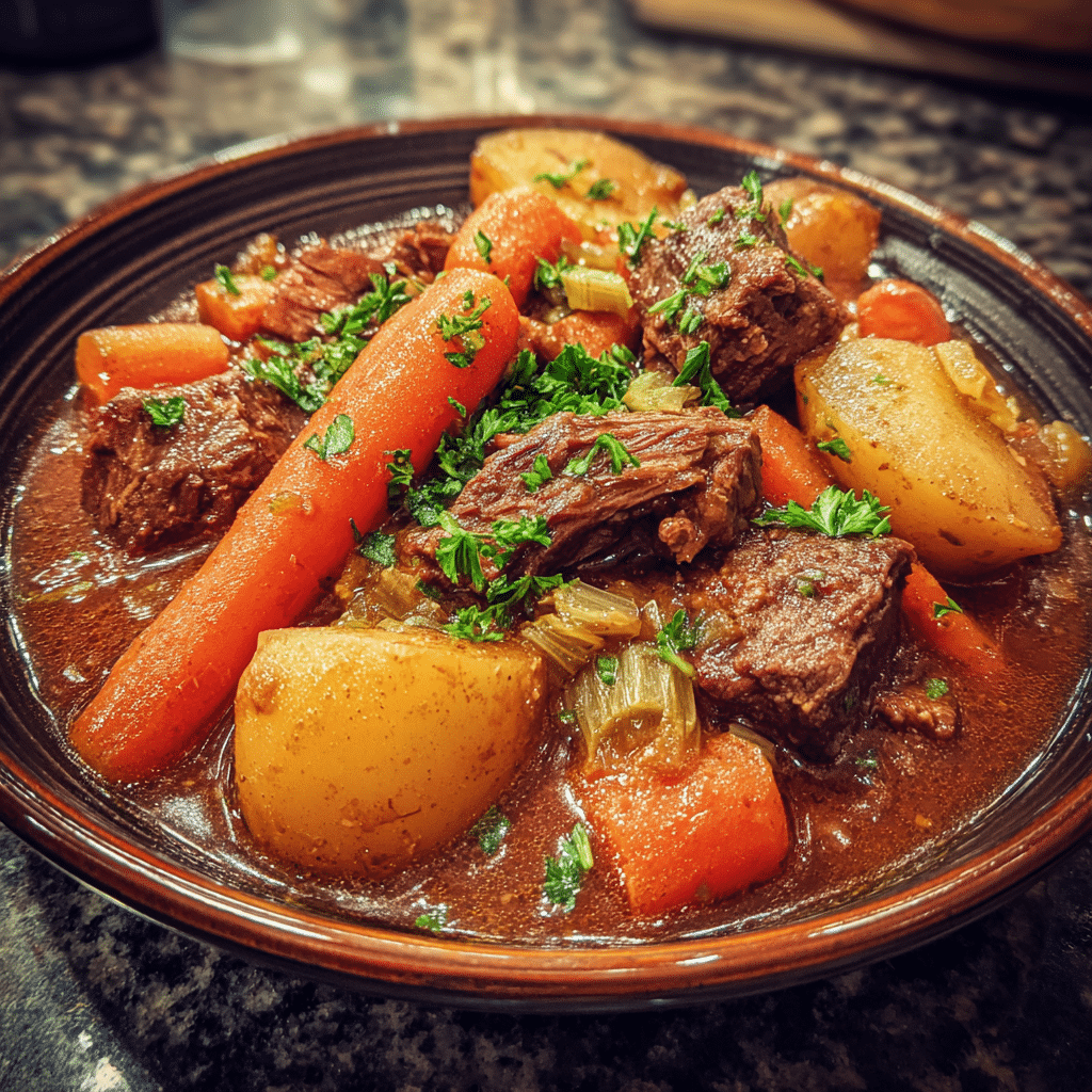 There’s something magical about a slow cooker bubbling gently all day, filling your home with the savory aroma of tender beef, wholesome vegetables, and fragrant herbs. This is the kind of meal that feels like a hug in a bowl—a dish made for chilly evenings, family gatherings, or those days when you just need a little extra comfort.