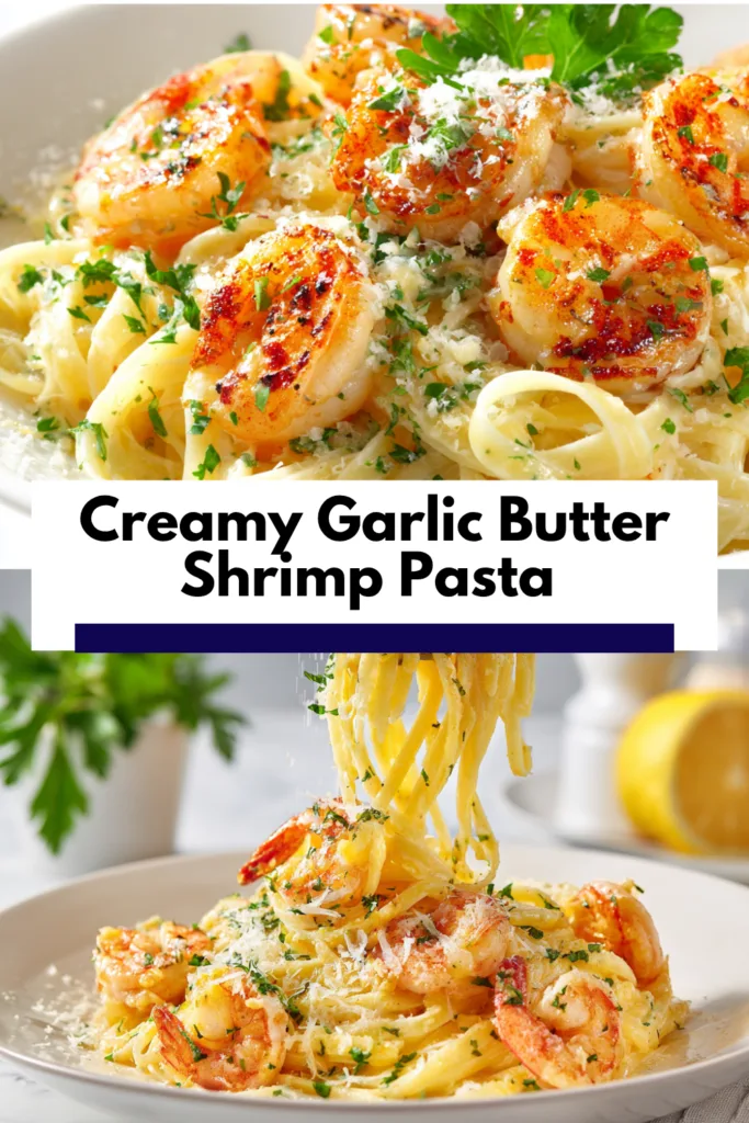 Creamy Garlic Butter Shrimp Pasta combines tender shrimp, garlic butter, and a rich Parmesan cream sauce with perfectly cooked pasta for an easy, elegant dinner.