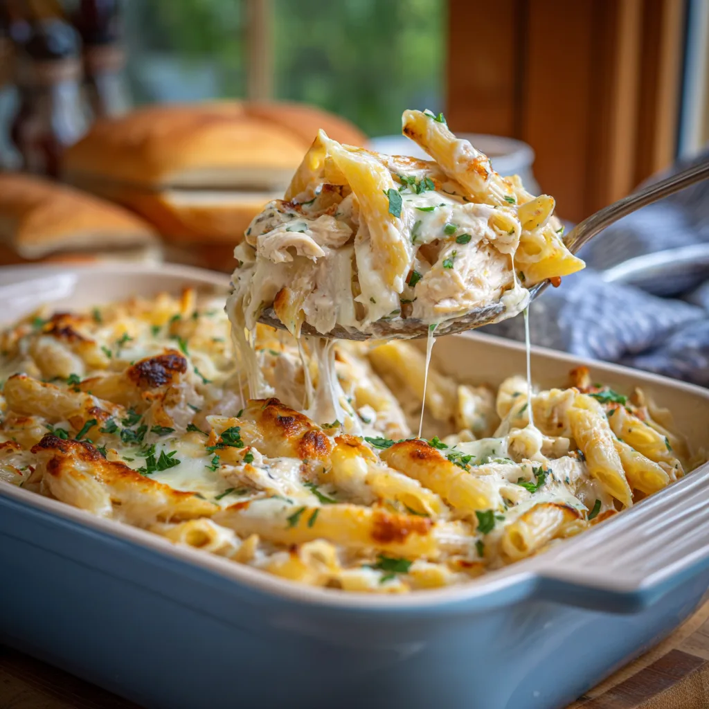 This recipe is all about simplicity and togetherness. A good pasta bake doesn’t rush you; it invites you to slow down, stir with care, and enjoy the process. The garlic-infused cream sauce wraps every piece of pasta, while the chicken adds heartiness and balance. Everything comes together in one pan, making it practical for busy days while still feeling special enough for Sunday dinner. ✨