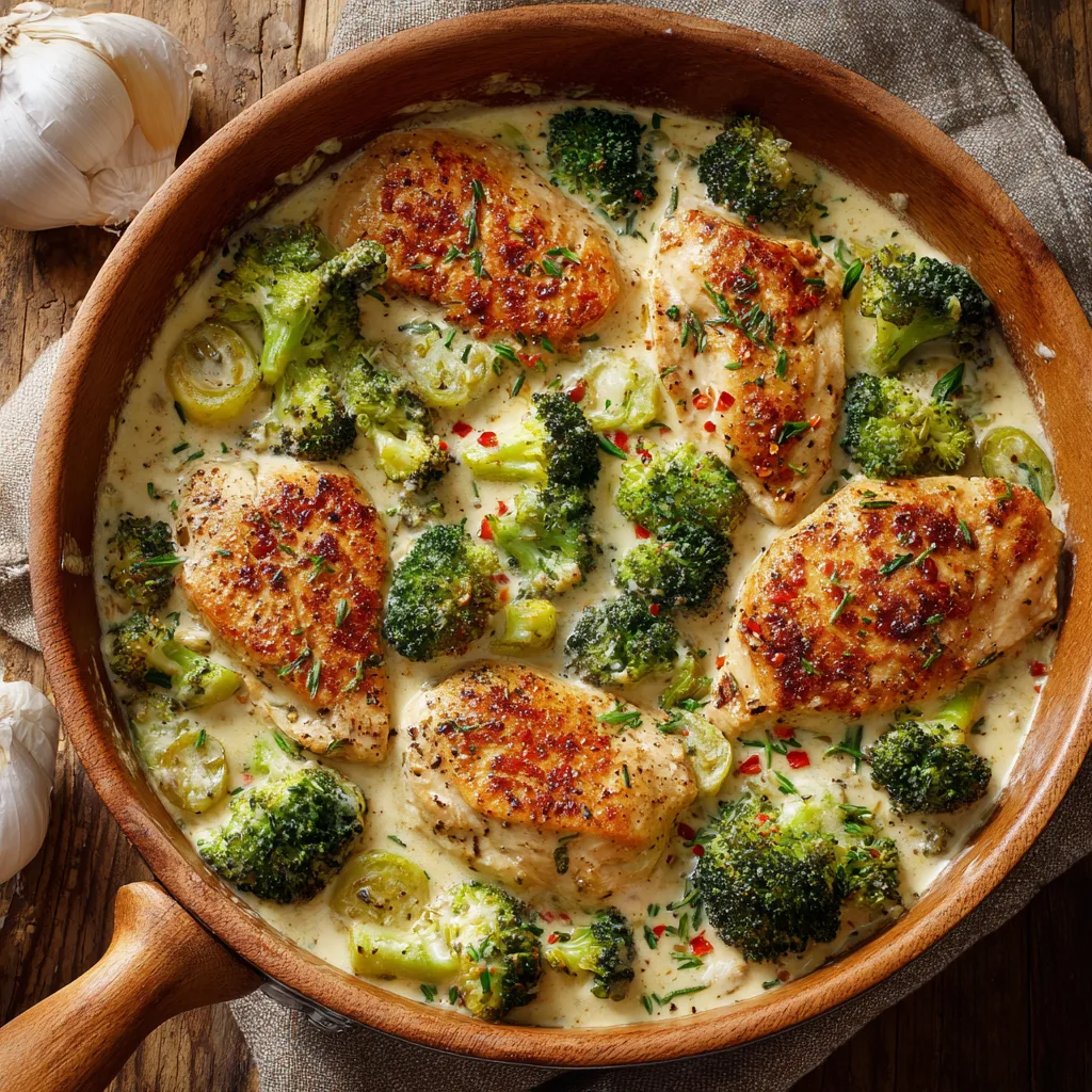 In many kitchens, creamy chicken dishes are a symbol of warmth and care—passed down through generations, adapted to what’s on hand, and always meant to be shared. This recipe respects that spirit. We gently sear the chicken to lock in juices, sauté garlic until fragrant (never rushed), and let the cream sauce come together slowly, coating every bite with rich flavor. The broccoli adds freshness and balance, making the dish hearty without feeling heavy.