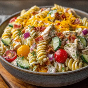 Creamy Chicken Bacon Ranch Pasta Salad – Perfect for Summer Picnics!