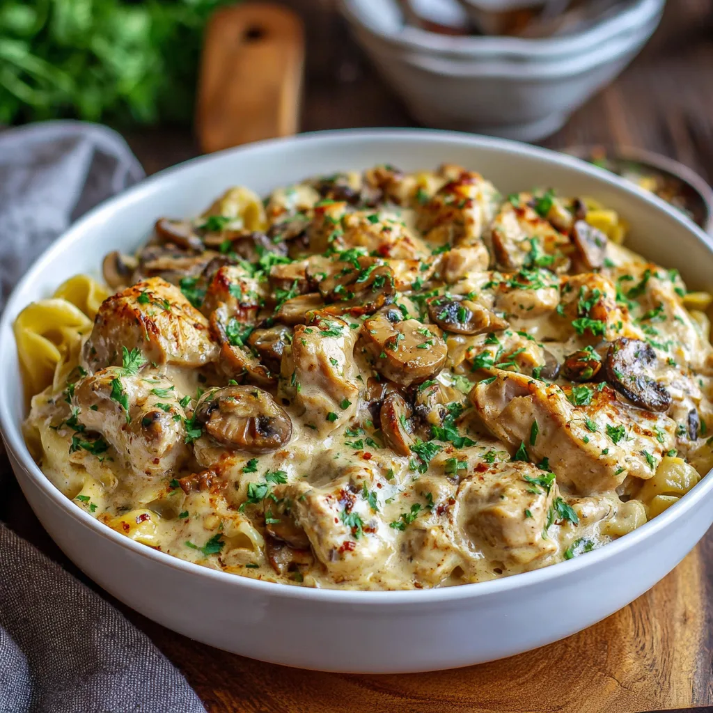 There’s a special kind of magic in dishes that bring everyone to the table without needing persuasion, and this Creamy Mushroom & Chicken Stroganoff Bake is exactly that kind of meal. Inspired by the comforting flavors of traditional stroganoff and transformed into an easy oven-baked dinner, this recipe is made for busy evenings, relaxed weekends, and those moments when you want something hearty, familiar, and deeply satisfying. It’s the kind of food that feels like a warm hug after a long day.