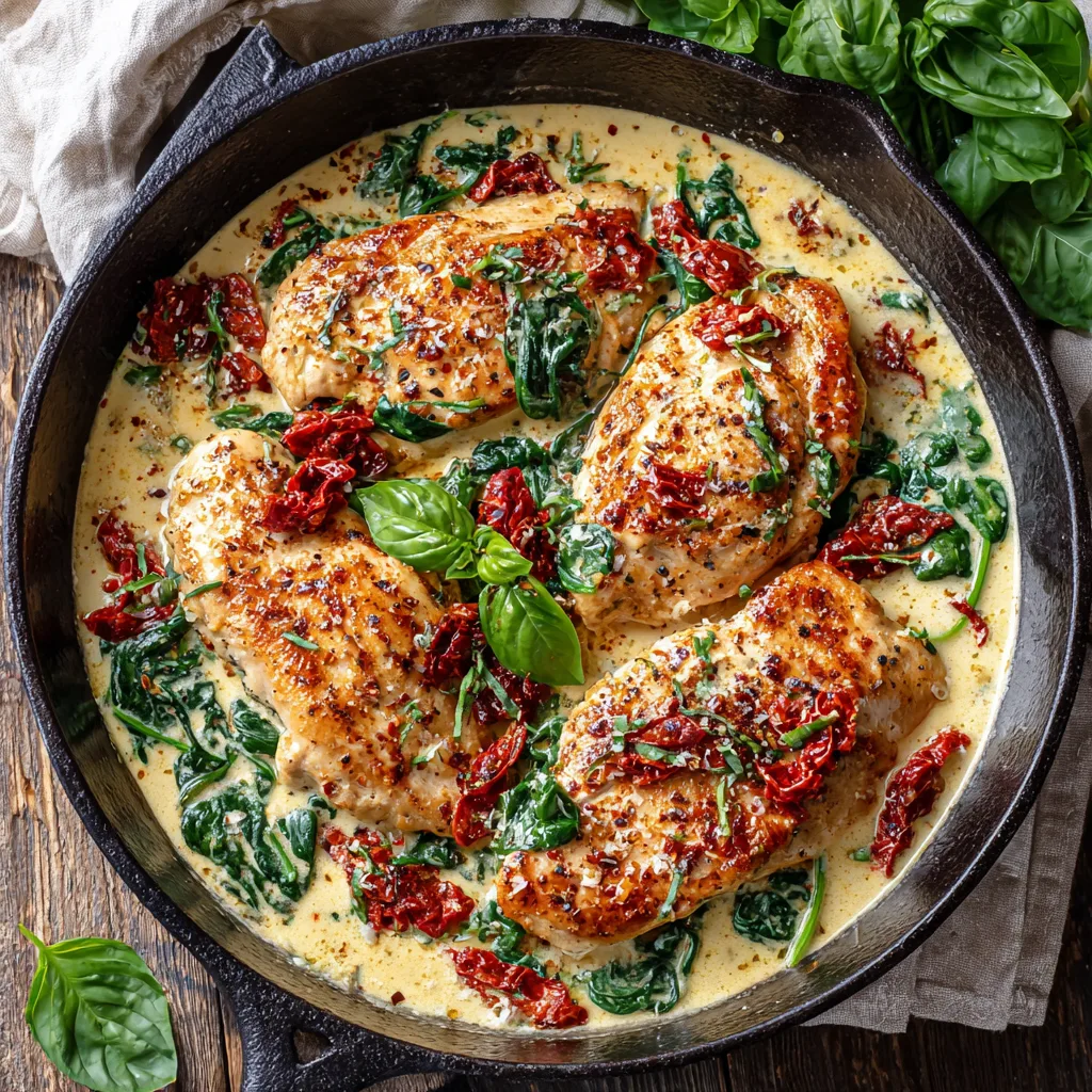 Tuscan-style cooking has always celebrated balance: tender meats, fragrant garlic, creamy sauces, and bursts of freshness from herbs and vegetables. In this recipe, juicy chicken breasts are gently simmered in a rich cream sauce infused with garlic, sun-dried tomatoes, and spinach. Everything cooks in one skillet, making it perfect for busy weeknights when time is short but the desire for a wholesome, satisfying meal is strong.