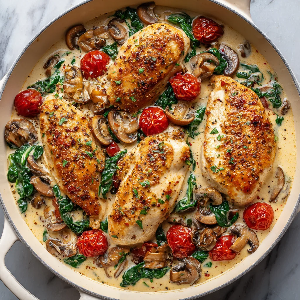 7. Return chicken to the skillet, spooning sauce over each piece. Simmer uncovered for 8–10 minutes until chicken is fully cooked and the sauce is creamy and rich.
