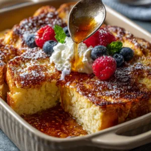 Ready to treat yourself—and everyone at your table—to something irresistibly comforting? This dish blends the silky luxury of classic crème brûlée with the cozy heartiness of a traditional French toast bake. Imagine waking up to the aroma of caramel bubbling gently beneath pillowy-soft bread, the custard soaking in overnight to create a breakfast that tastes like a warm hug. 😍