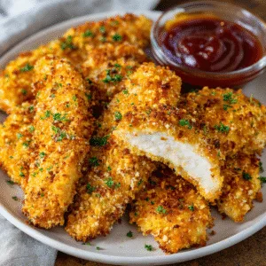 These tenders are the perfect combination of juicy chicken inside and a perfectly seasoned, crispy coating on the outside — all baked to golden perfection instead of fried. That’s right, you can indulge guilt-free while keeping things light and wholesome. No need for deep fryers or greasy messes — just your oven, a baking tray, and a few pantry staples.
