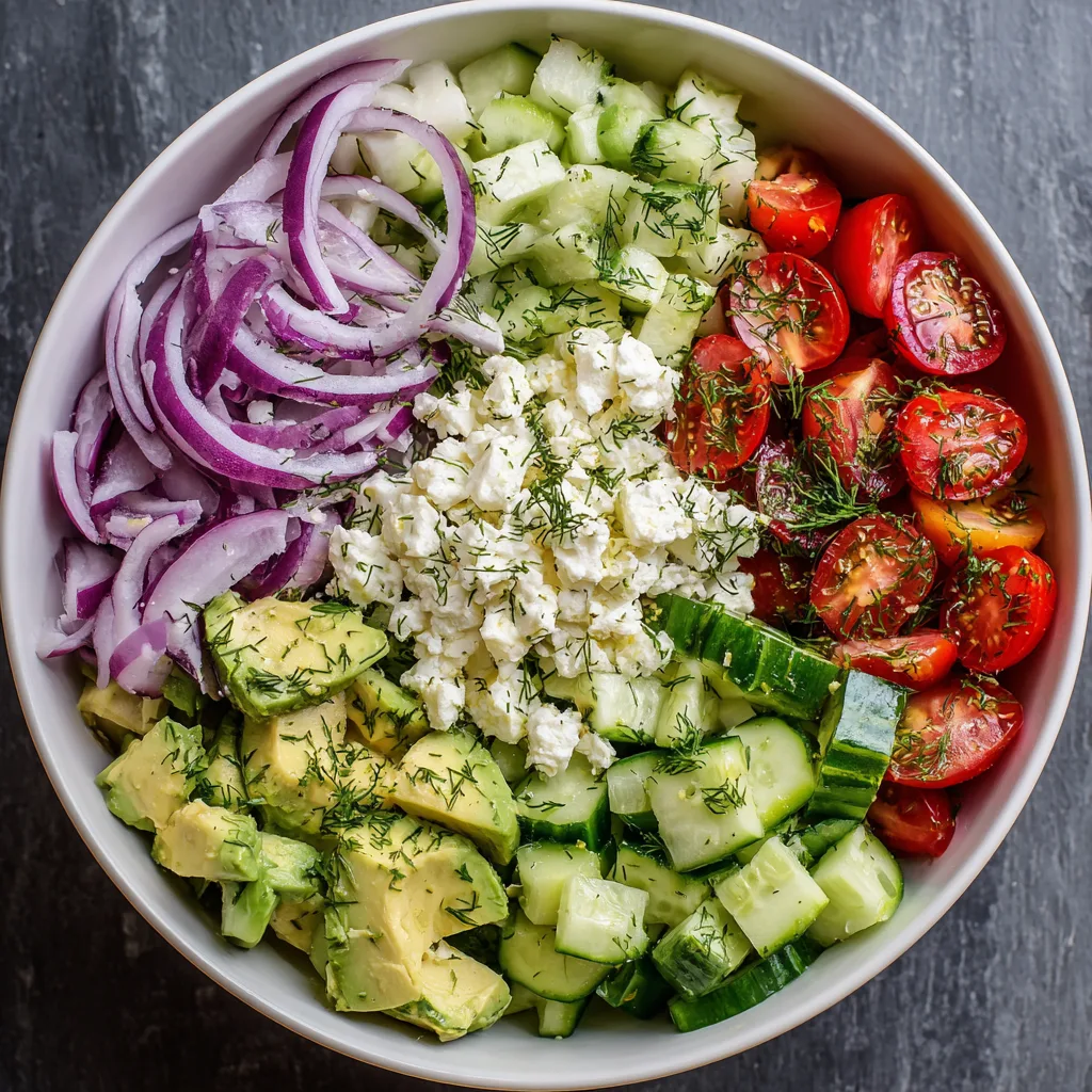 This delightful salad has roots in Mediterranean simplicity, where every ingredient is chosen for its purity and harmony. The crisp cucumber brings a cool, watery crunch; the avocado adds its buttery softness; and the feta crumbles lend a tangy, salty punch. Drizzled with olive oil and kissed with lemon juice, this salad is a perfect balance of creamy, crunchy, and zesty flavors.