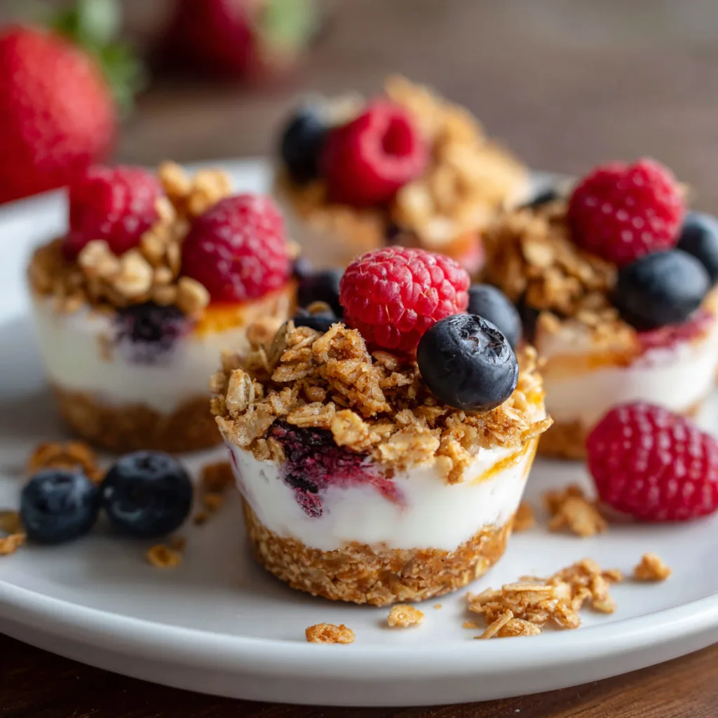 Imagine creamy yogurt paired with crunchy granola and juicy berries — all packed into adorable bite-sized cups. They’re light, naturally sweet, and perfect for both kids and adults. You don’t need fancy ingredients or special equipment — just a muffin tin, a spoon, and your freezer! ❄️