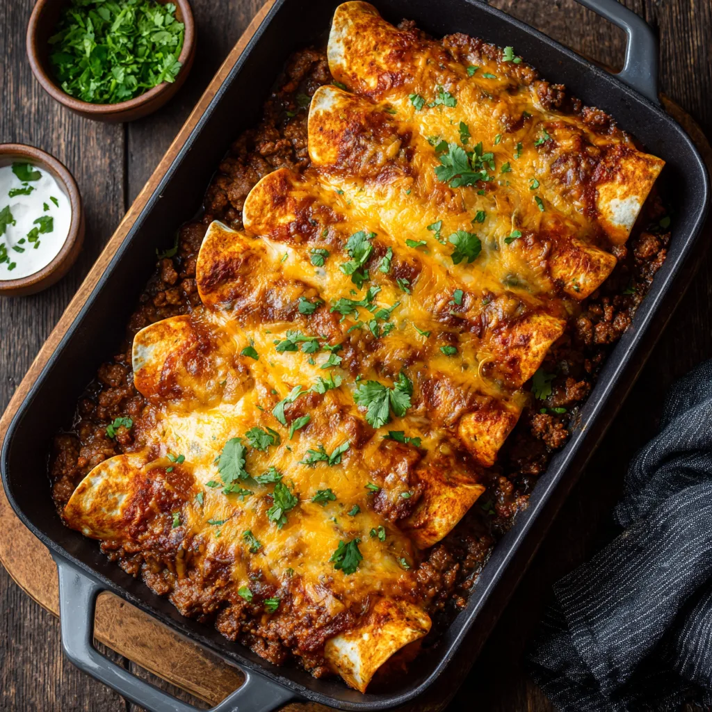 This dish has deep roots in traditional Mexican cooking, where enchiladas have been cherished for generations as a symbol of warmth, hospitality, and togetherness. Our version keeps the soul of the recipe intact while simplifying it just enough for busy weeknights. Every bite delivers a delightful mix of textures — soft tortillas, gooey cheese, and juicy beef bathed in savory sauce. ❤️