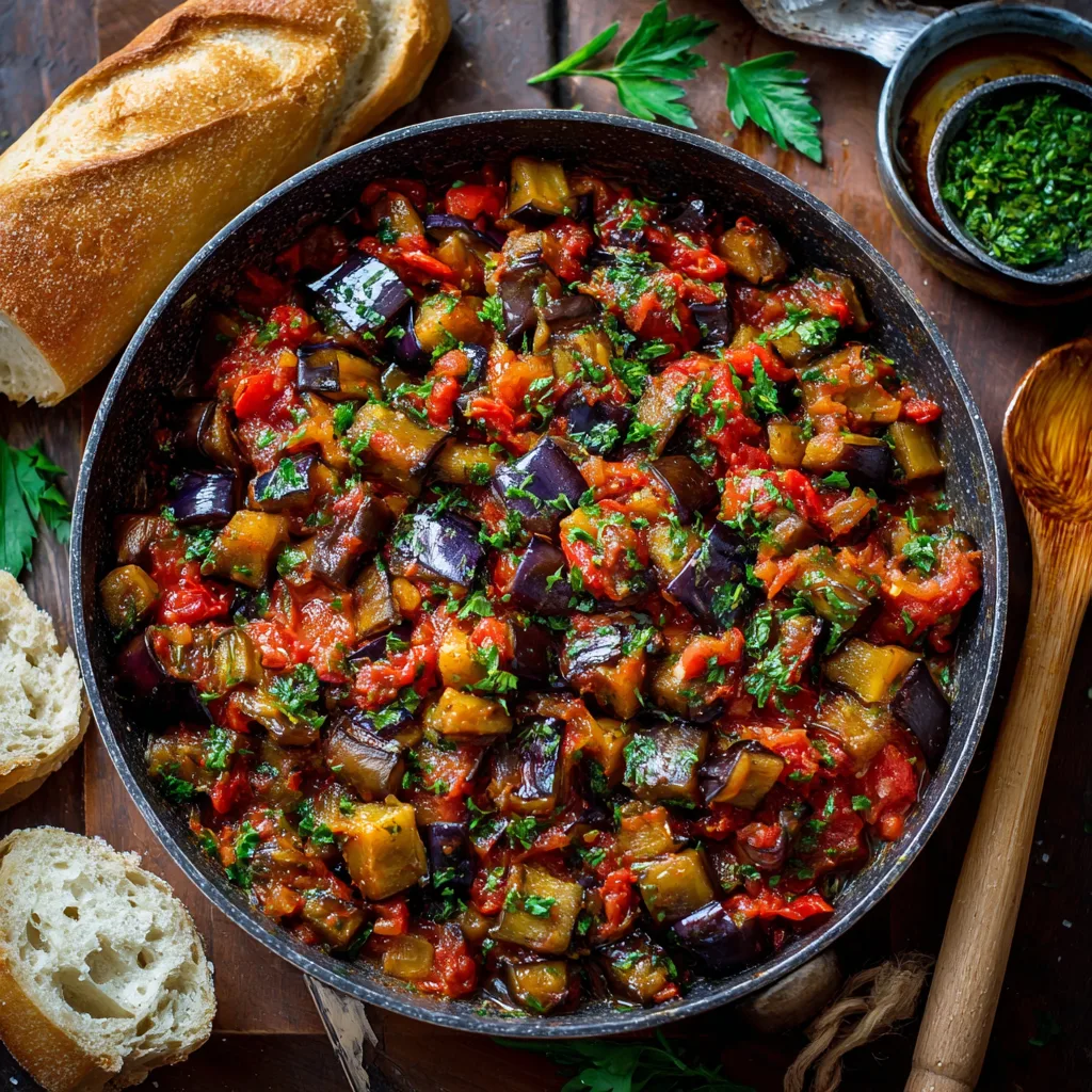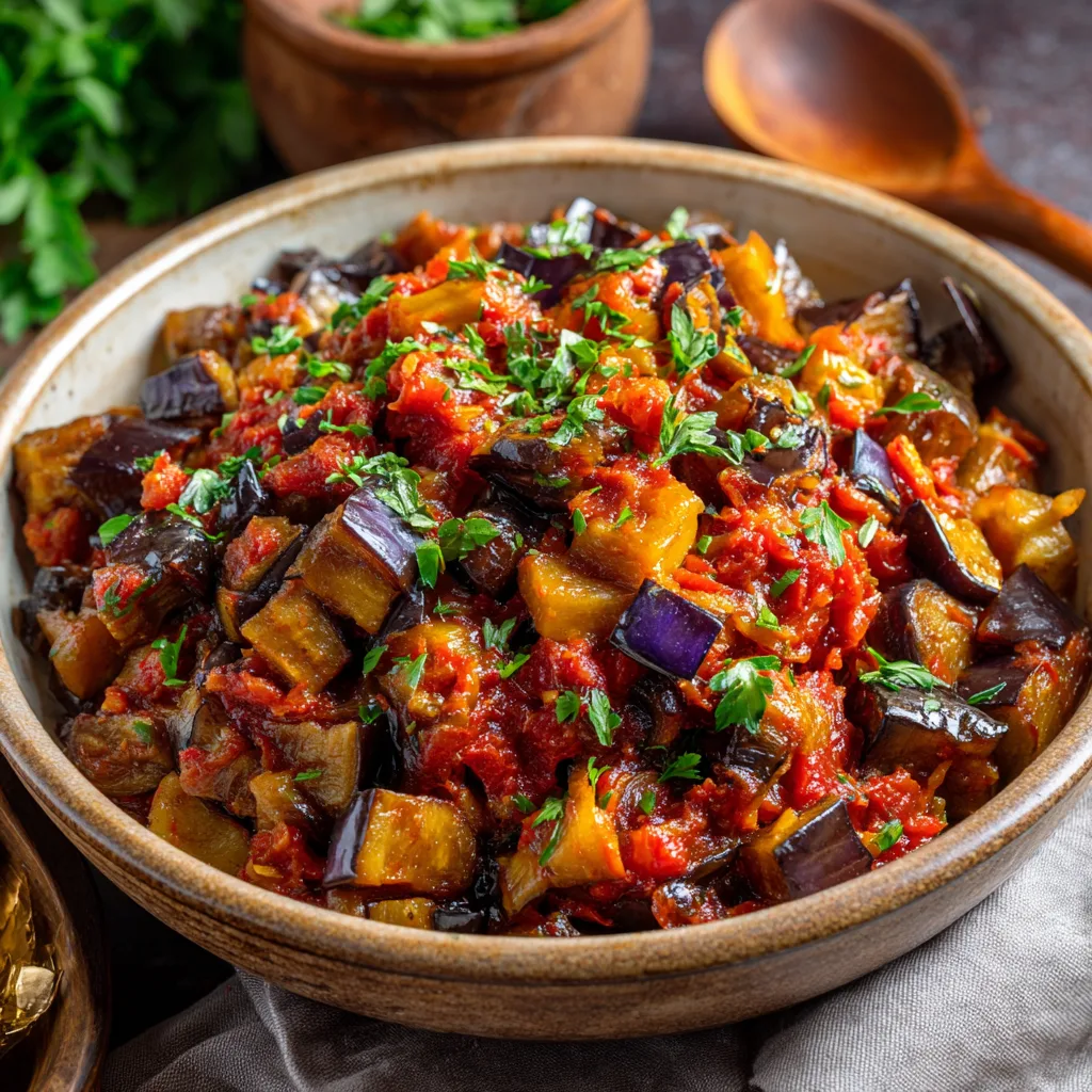 Whether you’re new to cooking eggplant or already love its silky texture, this simple recipe will win you over. It’s made with just a few wholesome ingredients: olive oil, garlic, tomatoes, and herbs — the essence of rustic home cooking. Perfect as a main dish over rice, pasta, or with crusty bread, it’s also delicious as a side for grilled meats or fish.