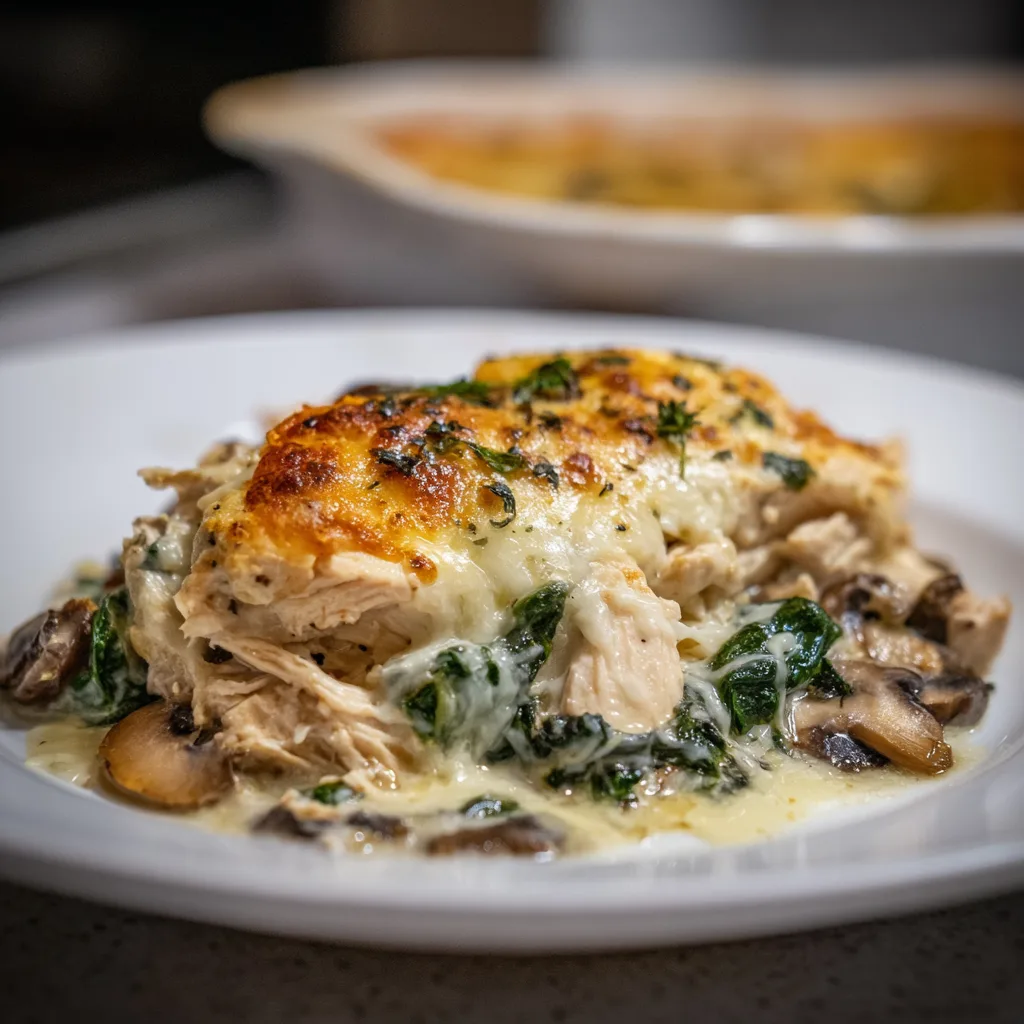 Hi there, food lover! 👋 Ready to make something wholesome, hearty, and oh-so comforting? Today, we’re diving into a classic family favorite that brings together tender chicken, earthy mushrooms, and fresh spinach, all wrapped in a creamy, cheesy hug. 💚🍗
