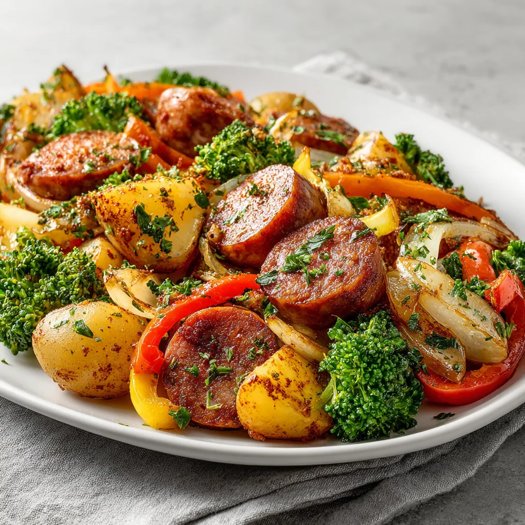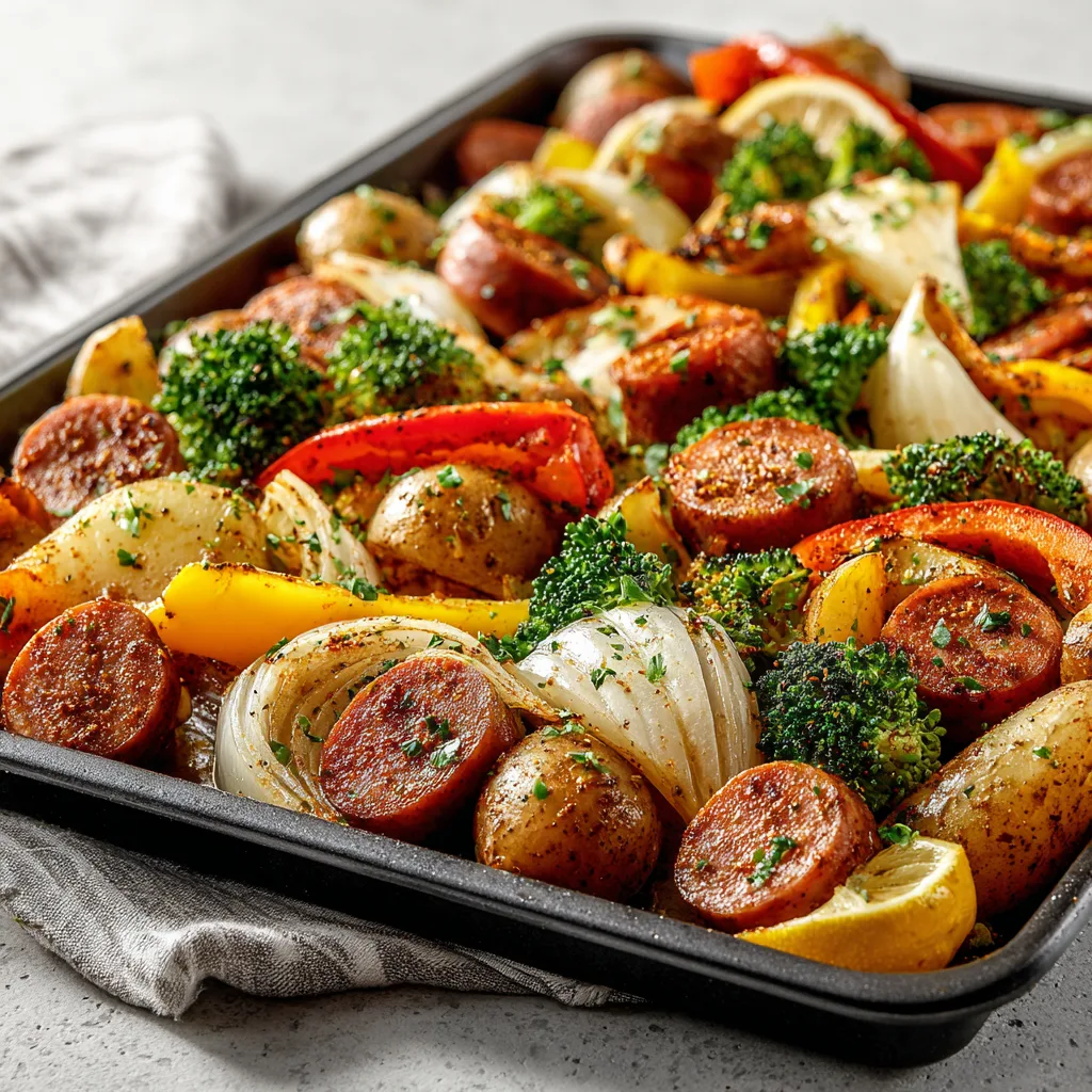 What I love about this recipe is its flexibility. You can choose your favorite sausage — spicy, sweet, or mild — and pair it with seasonal veggies. As they roast together, the flavors mingle beautifully: caramelized edges, savory juices, tender bites, all crowned with herbs and a hint of zest if you like. 🍋