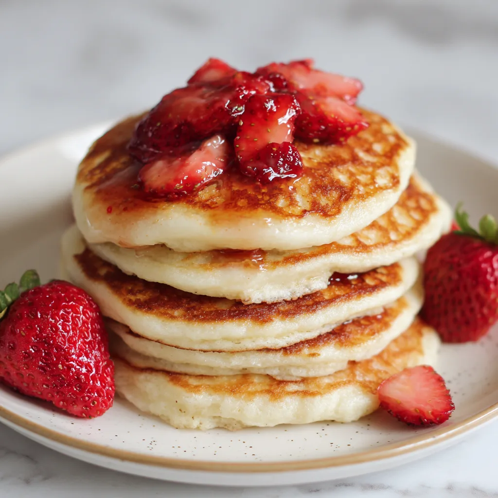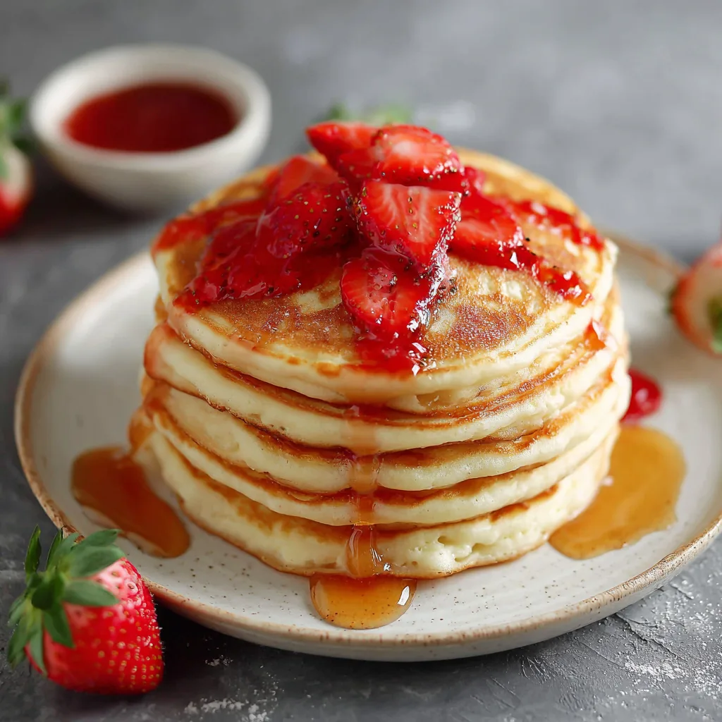 These pancakes are a balanced indulgence — light, slightly crisp on the outside, and tender inside, with natural sweetness from strawberries and a comforting buttery note. You can swap the flour for whole wheat or almond flour for a healthier twist, or even add a scoop of protein powder for an energy boost!