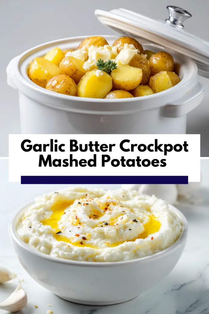 Creamy garlic butter crockpot mashed potatoes slow-cooked for rich flavor and smooth texture. Perfect easy comfort side dish.