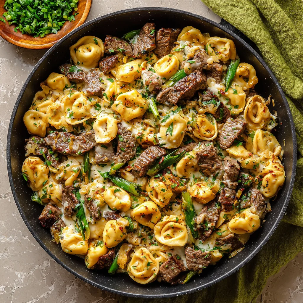 This dish brings together tender bites of seared steak, soft cheese-filled tortellini, and a rich garlic butter sauce that coats every bite. The flavors are bold but familiar, making it perfect for both adults and kids. No complicated techniques, no fancy equipment—just honest ingredients cooked with care. The beauty of a skillet meal is how everything comes together in one pan, saving time on cleanup while letting the flavors mingle naturally.