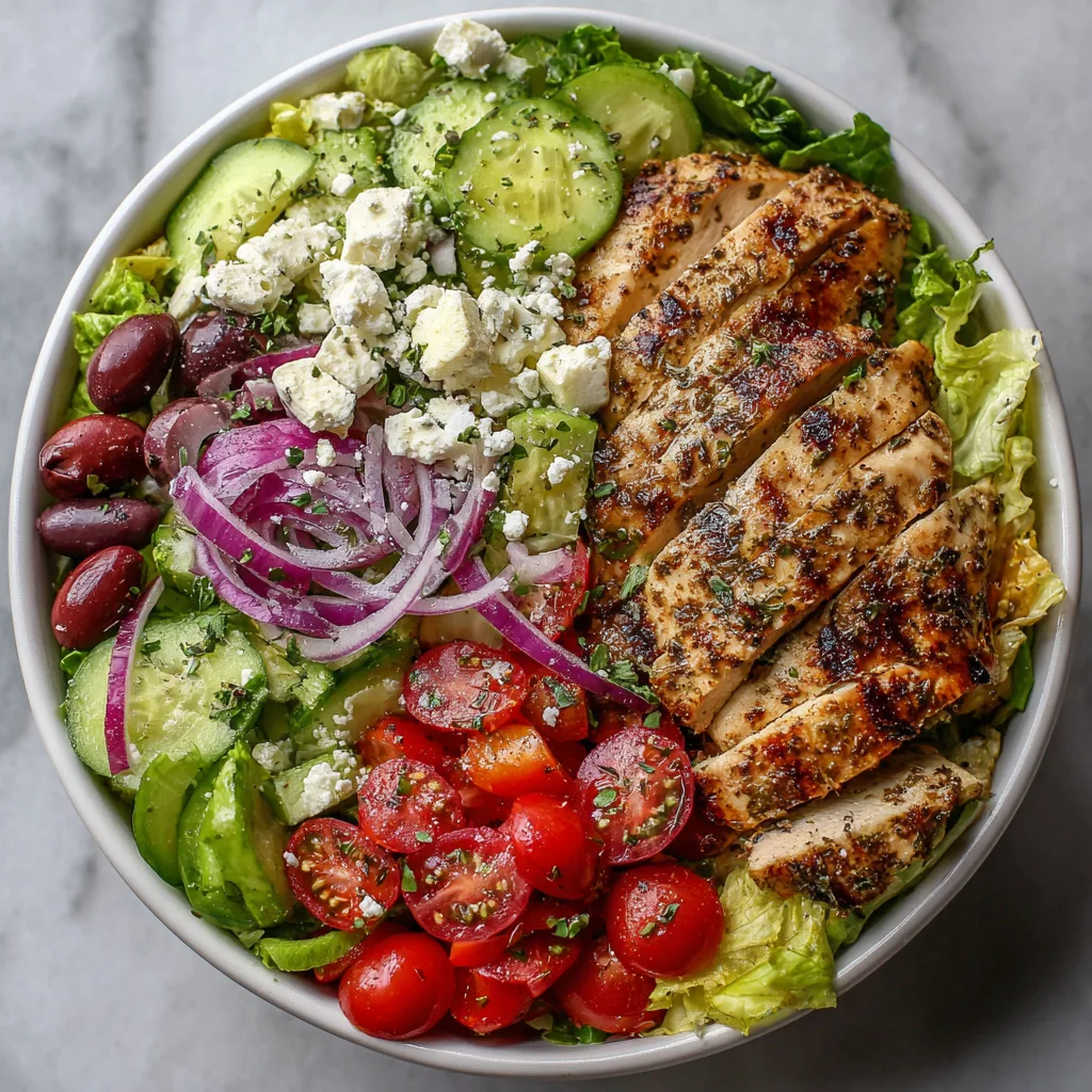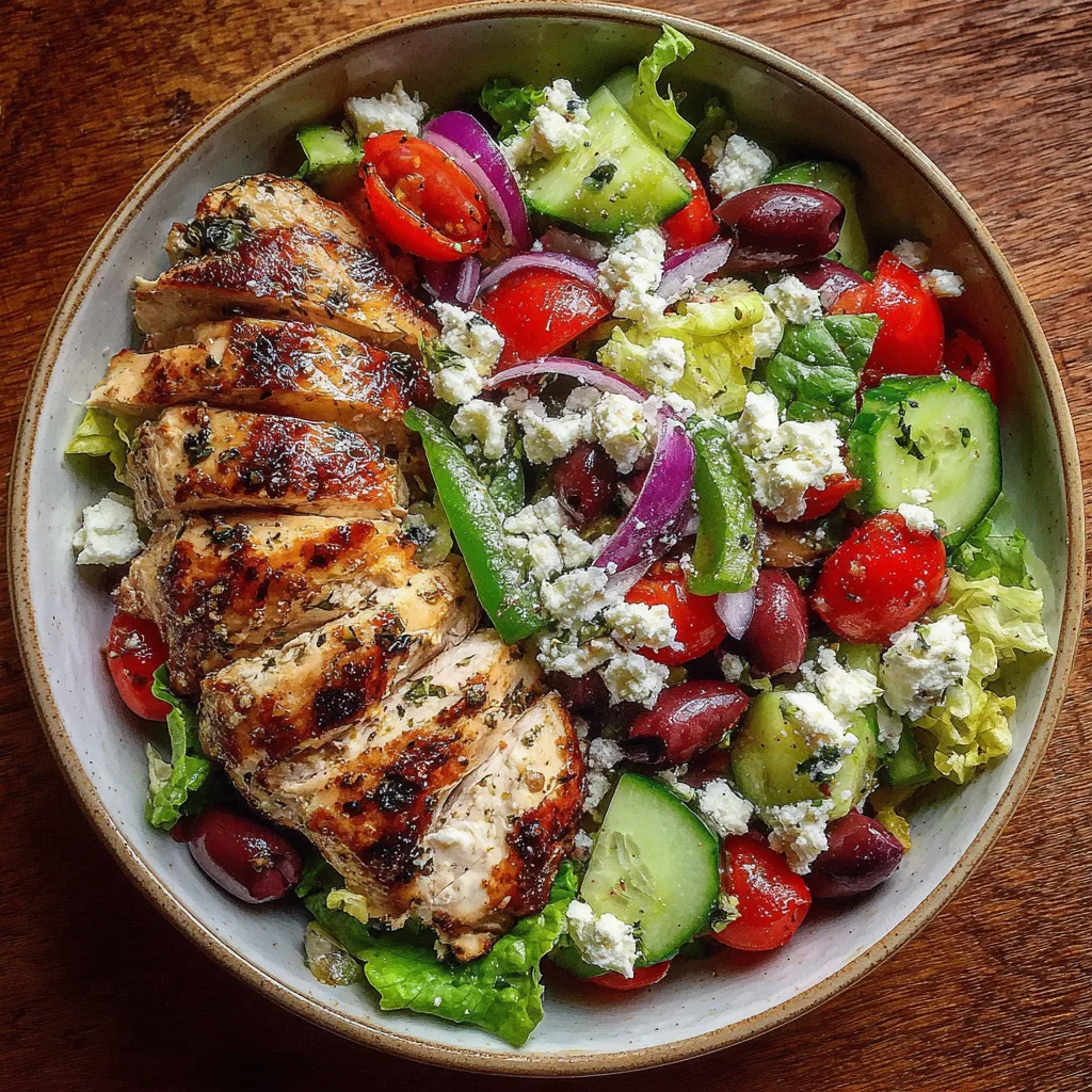 Hi there, food lover! 👋 Ready to bring a taste of the sunny Mediterranean to your table? 🇬🇷 Imagine the refreshing crunch of crisp cucumbers, juicy tomatoes, and tangy feta cheese, topped with tender, smoky grilled chicken—all kissed with a drizzle of golden olive oil and fragrant oregano. This Greek Salad with Grilled Chicken is a timeless dish that beautifully blends simplicity, health, and flavor. 🌿🍗