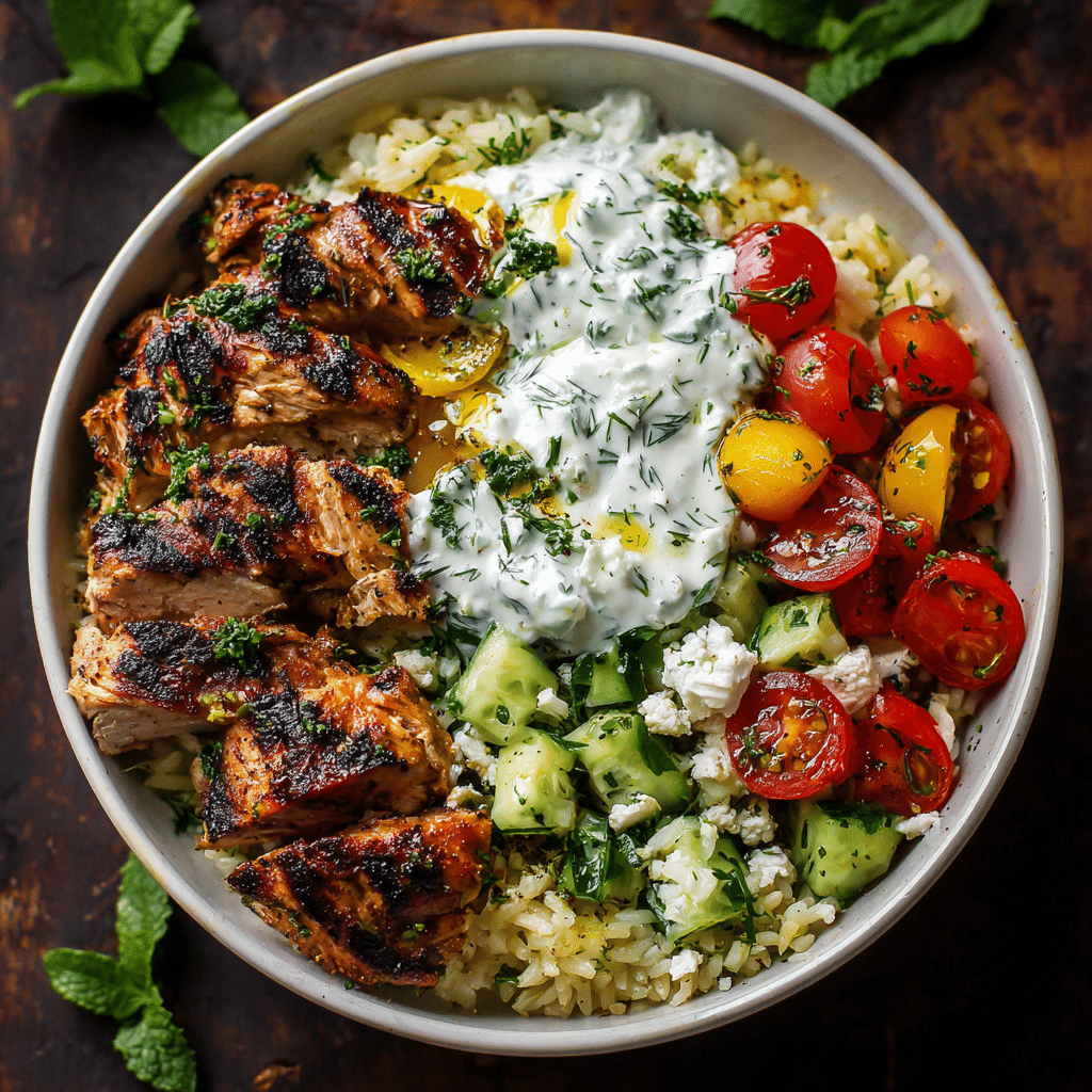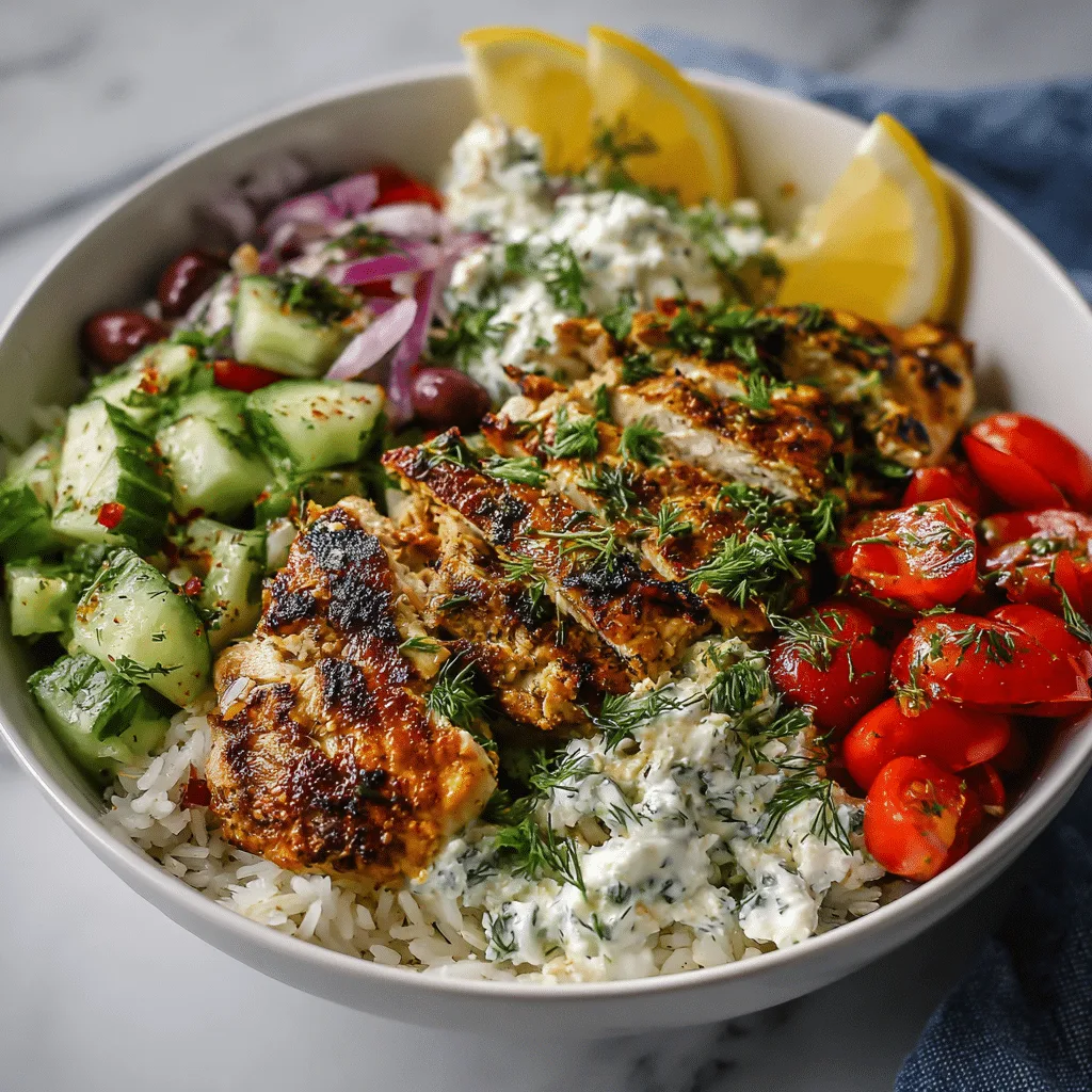 #GreekChicken #HerbedRice #MediterraneanBowl #HealthyDinner #HomemadeGreek #FreshAndFlavorful #EasyFamilyMeal #TzatzikiLove #HealthyBowls