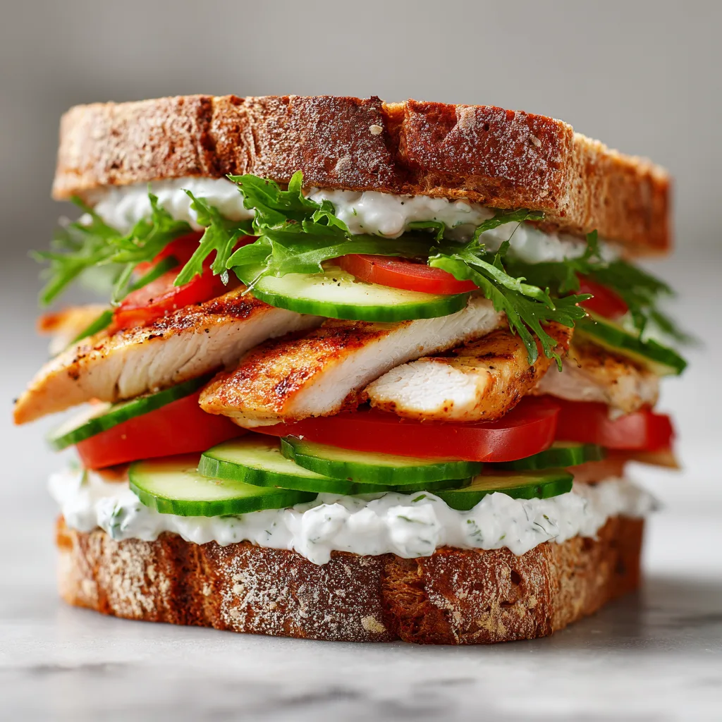 Healthy grilled chicken sandwich made with juicy seasoned chicken, fresh vegetables, and a light yogurt sauce. A quick, balanced, and low-calorie meal perfect for lunch or dinner.