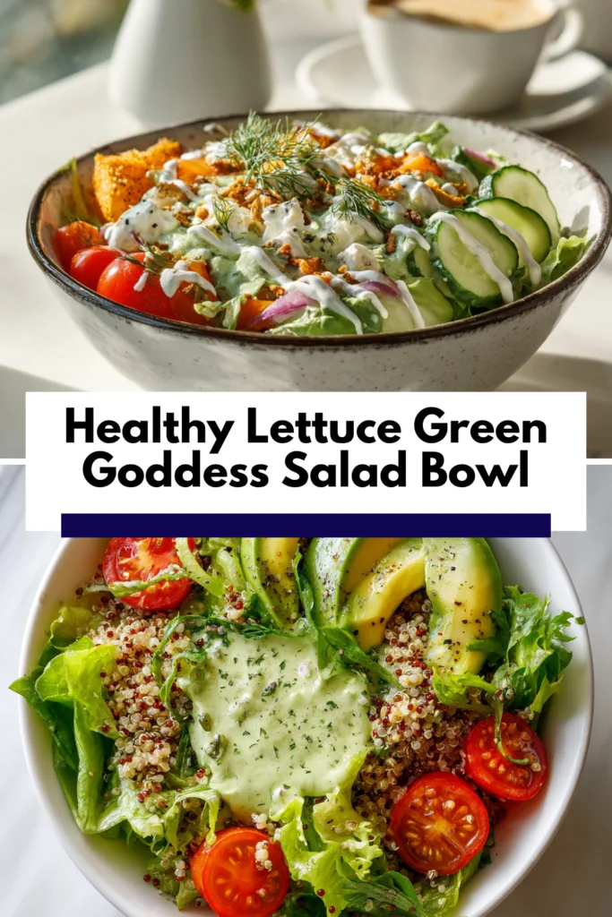 A nourishing and refreshing healthy lettuce green goddess salad bowl packed with crisp greens, creamy herb dressing, and wholesome ingredients.