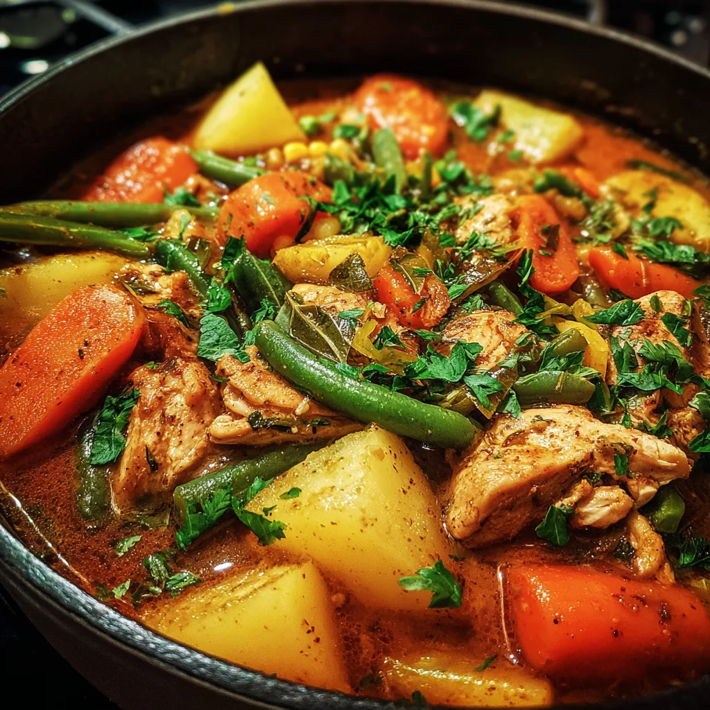 This stew is a celebration of wholesome simplicity — tender chicken pieces mingling with chunky vegetables, simmered gently in a rich, savory broth. It’s the kind of meal that reminds you of cozy evenings by the fire, when family gathers around the table to share warmth and laughter. Traditionally, such stews were made to stretch humble ingredients into something magical — a meal that nourishes both body and soul.