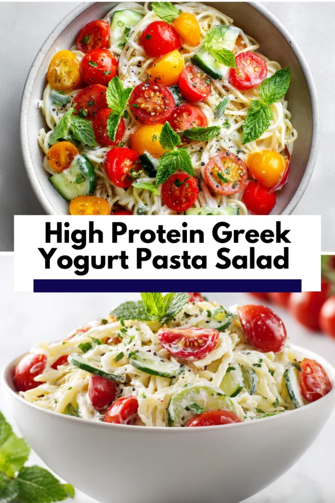 High Protein Greek Yogurt Pasta Salad made easy with a creamy, healthy twist. Fresh veggies, rich flavor, and satisfying protein in every bite.