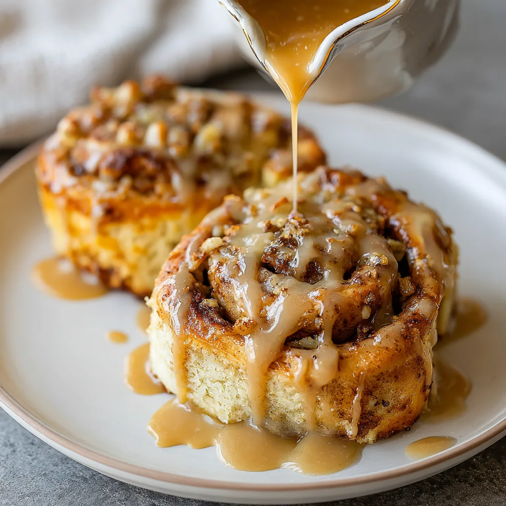 - Whisk glaze ingredients together and drizzle over warm rolls before serving.