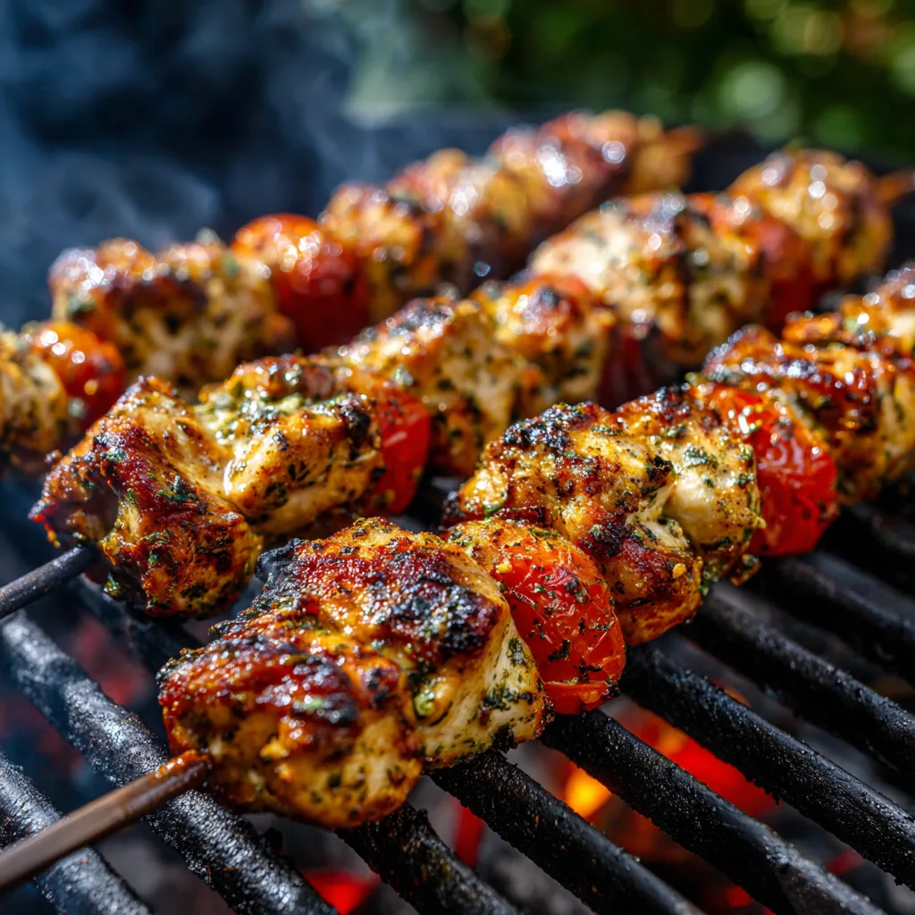 Place the skewers on the hot grill. Cook for 10–12 minutes, turning every few minutes to ensure even charring. Baste occasionally with leftover marinade for extra juiciness. The chicken should be beautifully golden and reach an internal temperature of 165°F (74°C).