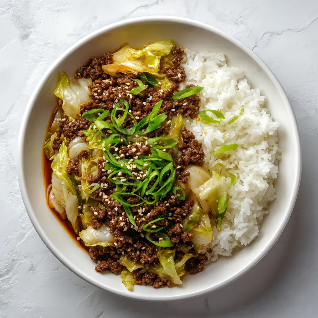 PrintMongolian Ground Beef and Cabbage Skillet β Easy High Protein Dinner