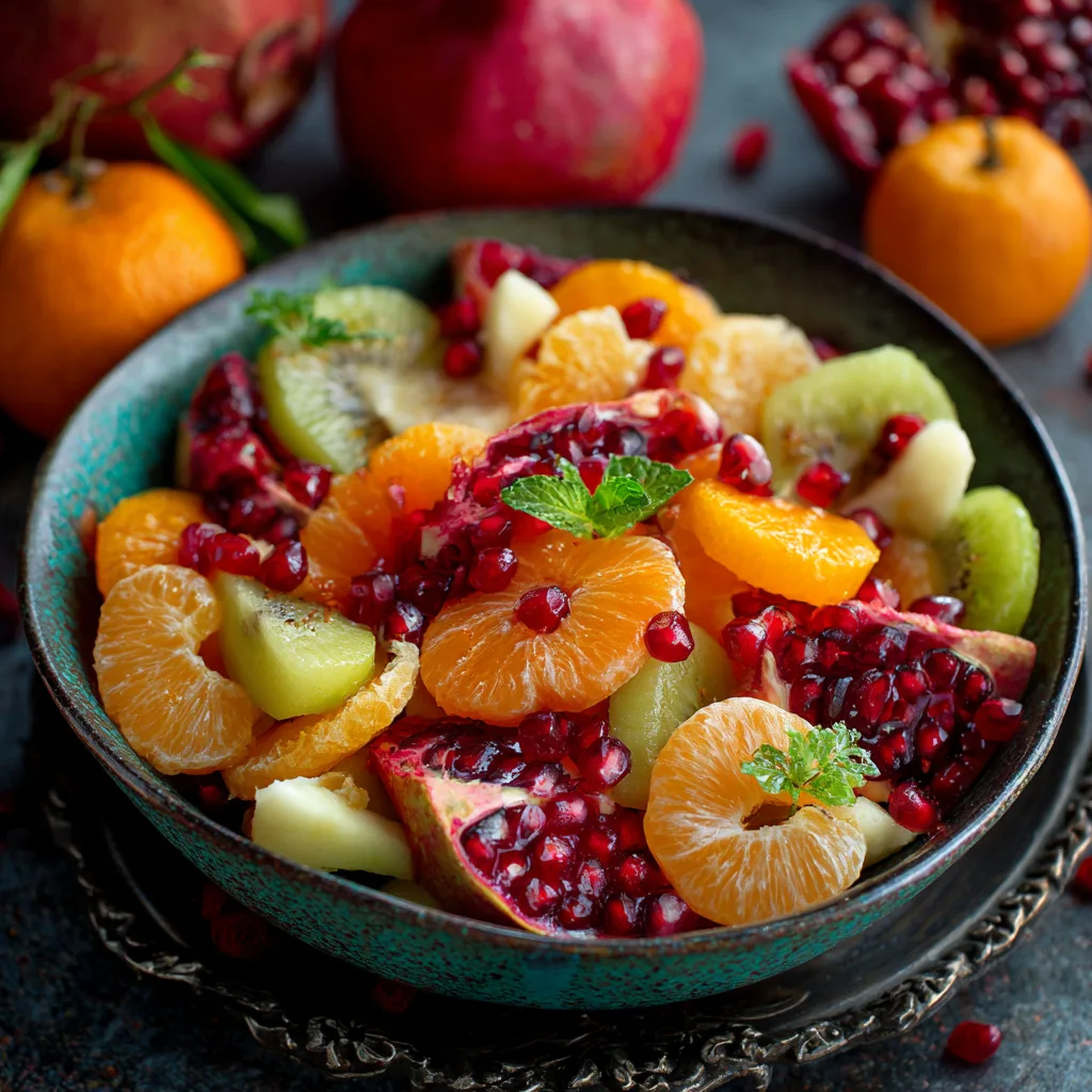 During the colder months, fruits like oranges, apples, pears, and pomegranates reach their peak. They are naturally sweet, vibrant, and full of life, offering a welcome contrast to heavier winter dishes. This salad is built around those honest ingredients, allowing each fruit to shine on its own. A gentle squeeze of fresh citrus enhances the sweetness already present, proving that balance—not excess—is the secret to great flavor.