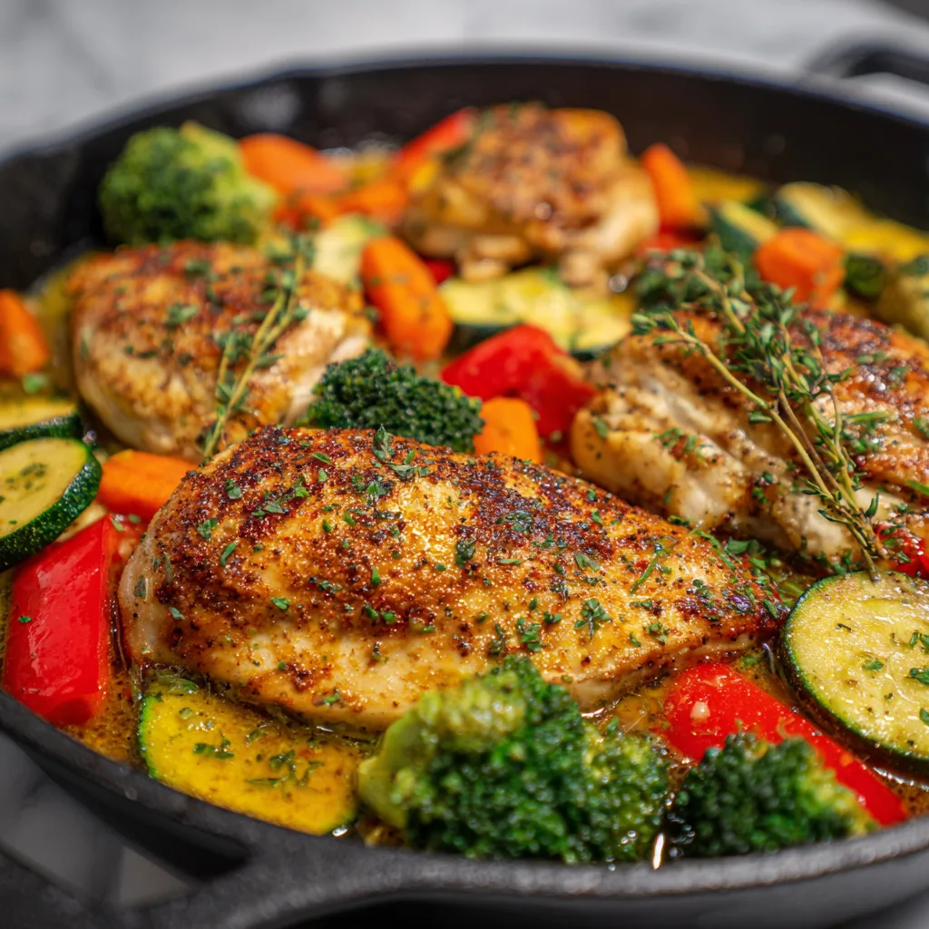 Hi there, food lover! 👋 Ready to make a dish that fills your home with the comforting aroma of sizzling butter, garlic, and tender chicken? 🍗✨ This One-Pan Garlic Butter Chicken and Veggies is a traditional-style meal that’s as simple as it is satisfying. It’s the kind of rustic, wholesome dish that brings everyone to the table—no fancy gadgets, no complicated steps, just honest, delicious cooking the old-fashioned way. ❤️