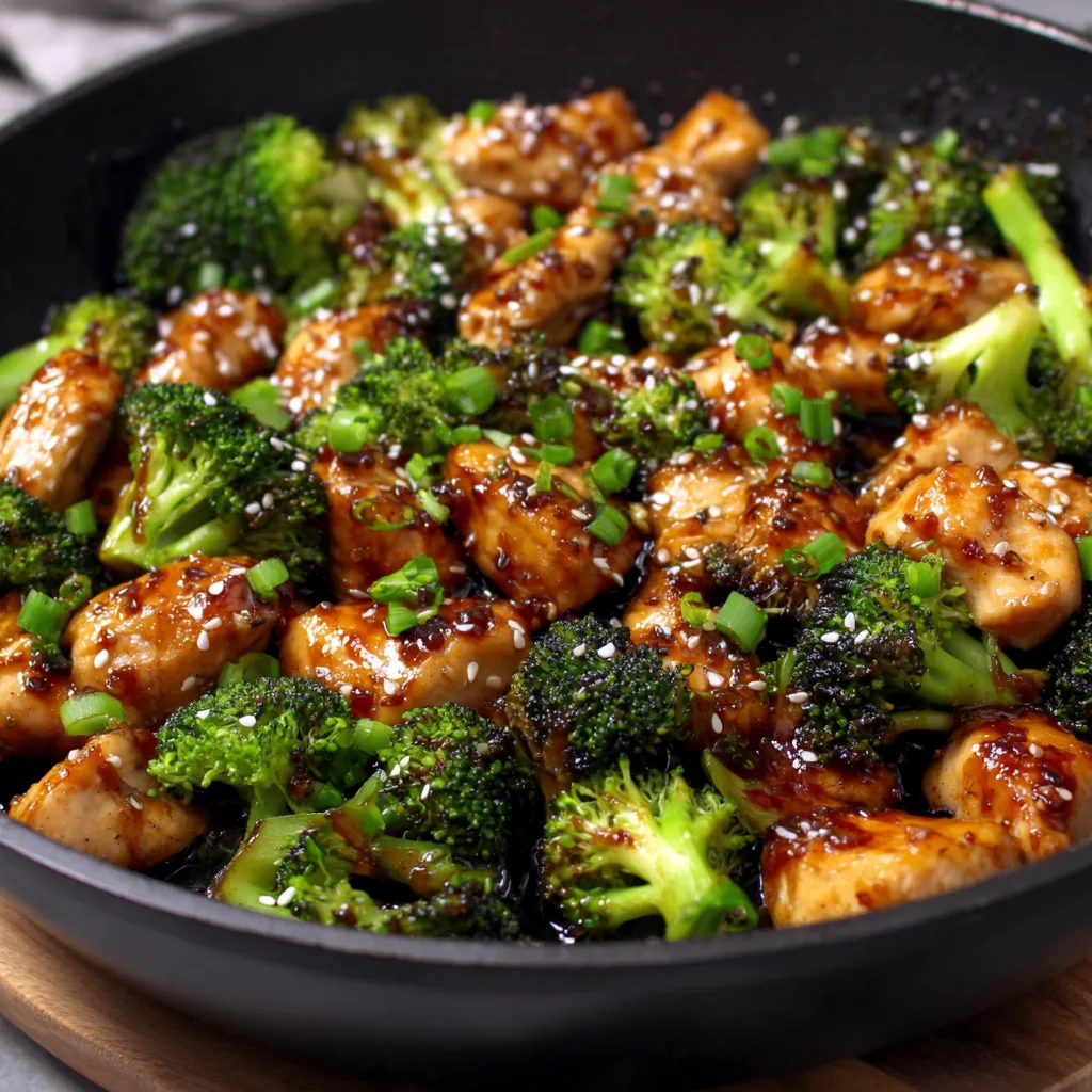 Return the chicken to the pan. Pour the honey garlic sauce over the chicken and broccoli. Stir well and let simmer for 2–3 minutes until the sauce thickens and coats everything.