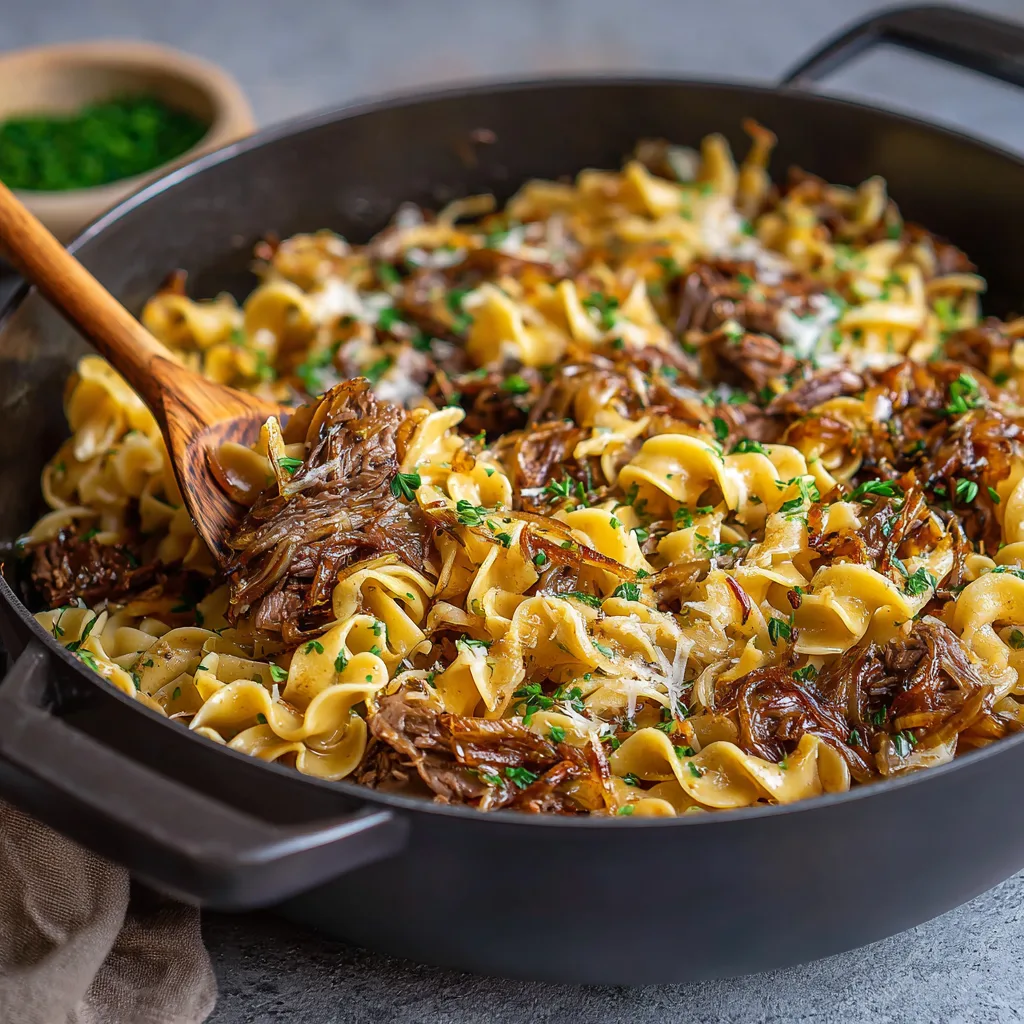 This dish takes inspiration from the beloved French onion soup, famous for its deep, slow-cooked onion flavor and luxurious beef broth. Here, we bring all that magic into one pot — no need for multiple pans or long hours of simmering. The beef browns beautifully, the onions turn golden and sweet, and everything comes together with the noodles soaking up that glorious sauce. It’s comfort food elevated, with that homey, old-fashioned feel that fills both the belly and the soul.