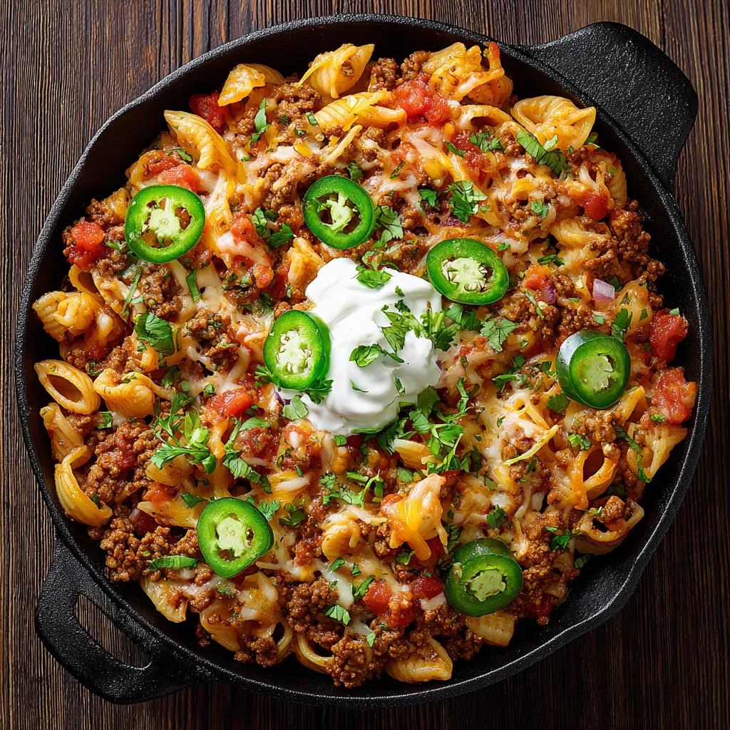 Imagine the aroma of seasoned ground beef sizzling with onions and garlic, mingling with a blend of taco spices, then bubbling away in a tomato base with pasta that soaks up all that flavor. As if that weren’t enough, a blanket of melty cheese brings it all together, making every bite irresistible. 🤤 Whether you top it with fresh cilantro, jalapeños, or a dollop of sour cream, it’s endlessly customizable.