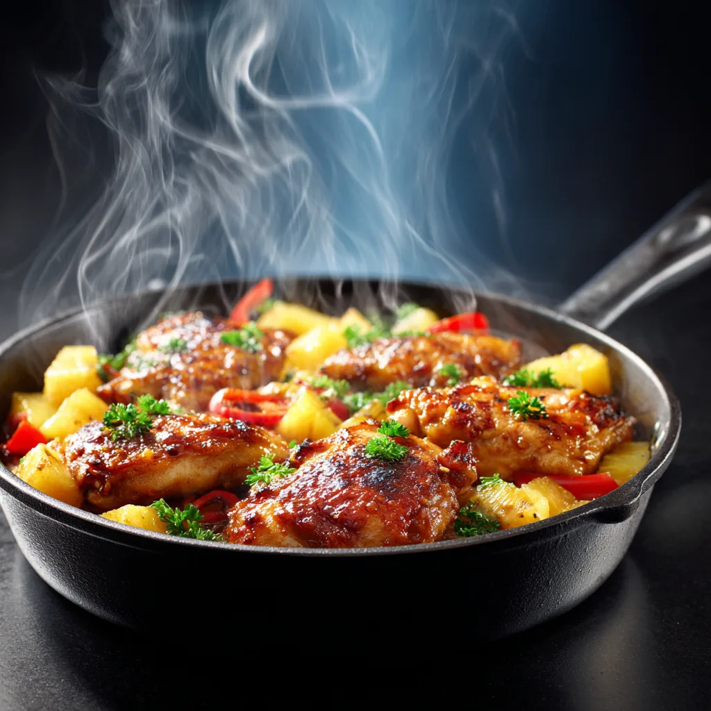 Pineapple BBQ Chicken is a sweet and smoky dinner made with juicy chicken simmered in barbecue sauce, pineapple juice, and garlic. This easy recipe delivers tender chicken coated in a rich sticky glaze with tropical pineapple flavor and is perfect for serving over rice or vegetables.