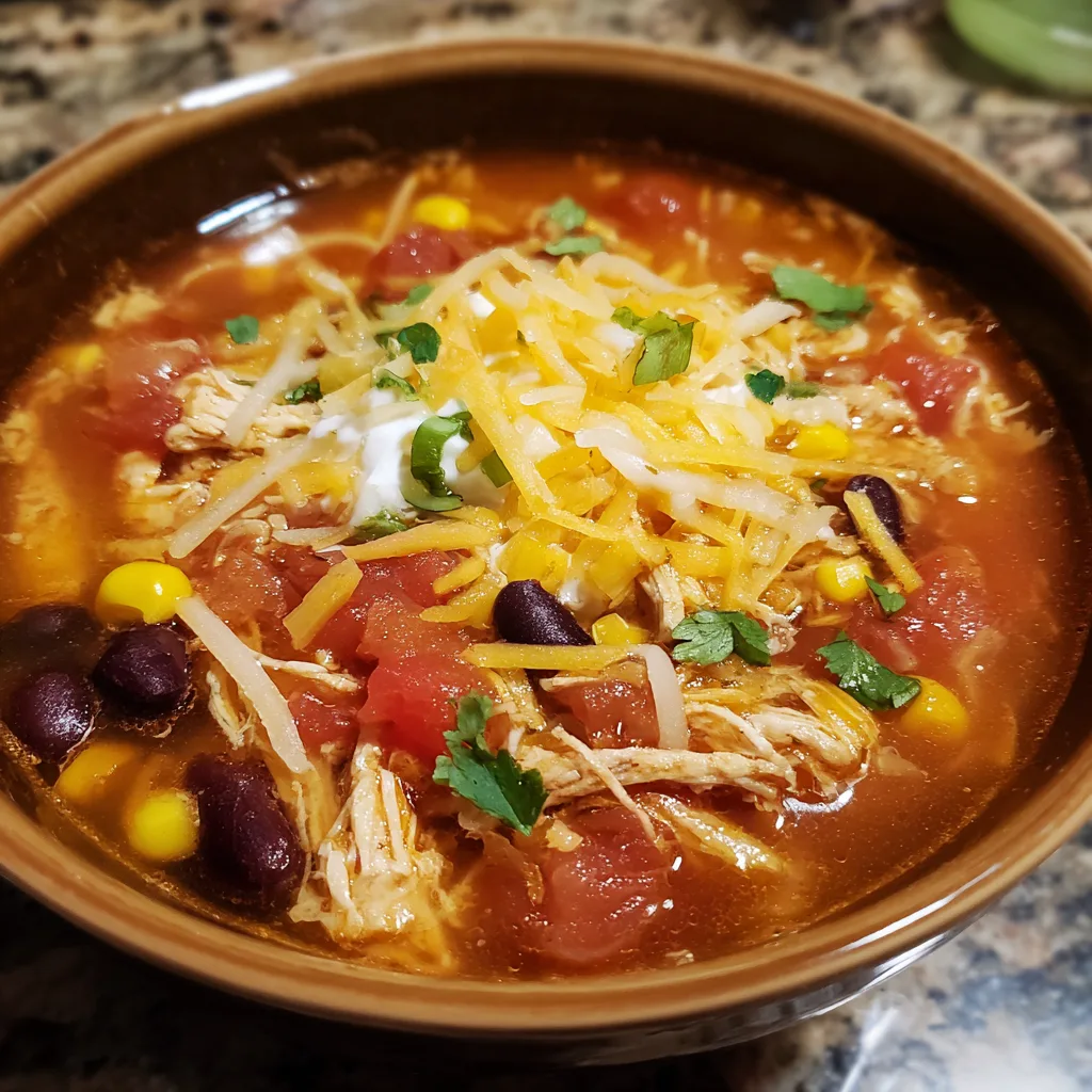 #ChickenTacoSoup #7CanRecipe #EasyDinnerIdeas #PantryMeals #TexMexComfort #QuickSoups #BusyWeeknightMeals