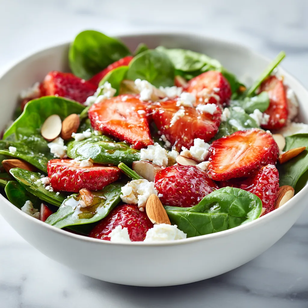 Salads like this one are inspired by the traditional idea of seasonal cooking—using ingredients at their peak freshness to create dishes that are naturally delicious. Sweet, juicy strawberries pair wonderfully with tender spinach leaves, offering a balance of sweetness and earthiness. Add a little crunch from nuts, a touch of creamy cheese, and a simple homemade dressing, and you have a salad that feels elegant while remaining wonderfully easy to prepare.