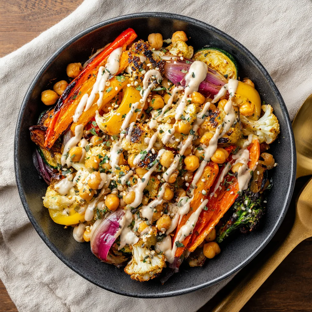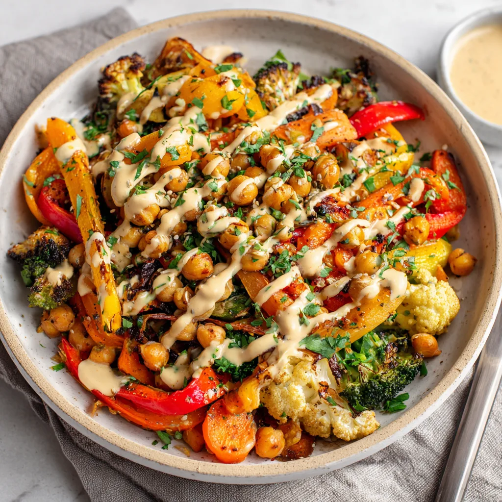 Hi there, food lover! 👋 Ready to nourish your body and soul with something hearty, colorful, and packed with goodness? Today we’re diving into a wholesome dish that celebrates the simplicity of roasted vegetables, the heartiness of chickpeas, and the richness of a velvety tahini dressing. 🥕✨
